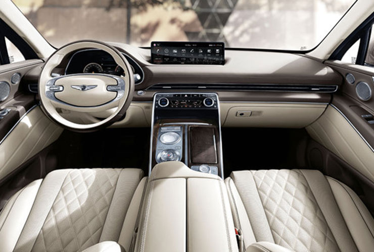 GV80의 실내공간은 간결함에 고급스러움까지 모두 갖췄다. 중앙을 가로지르는 송풍구 디자인을 통해 수평적인 공간감을 강조하고, 실내 중앙부에는 조작 버튼을 줄이고 큼직하게 만들어 운전자가 편안하게 조작할 수 있도록 설계했다. 특히나 센터 콘솔에 시선을 뗄 수가 없다. 정교하게 세공된 보석을 얹어놓은 것 같은 디자인의 다이얼 변속기가 장착됐는데 고급스럽다. 시트는 고급스러운 가죽과 퀼팅이 눈길을 멈추게 한다. 시트 포지션은 기존보다 더 단단하게 만들어 최적의 승차감을 제공하고 마사지 기능도 추가해 운전자의 피로를 줄여준다. 이와 함께 ‘전자제어 서스펜션’도 현대차 최초로 적용됐다. 이는 전방 카메라와 내비게이션이 수집하는 정보를 통해 전방 노면 정보를 사전에 인지하고 서스펜션을 상황에 따라 유동적으로 자동 제어하는 시스템이다.
