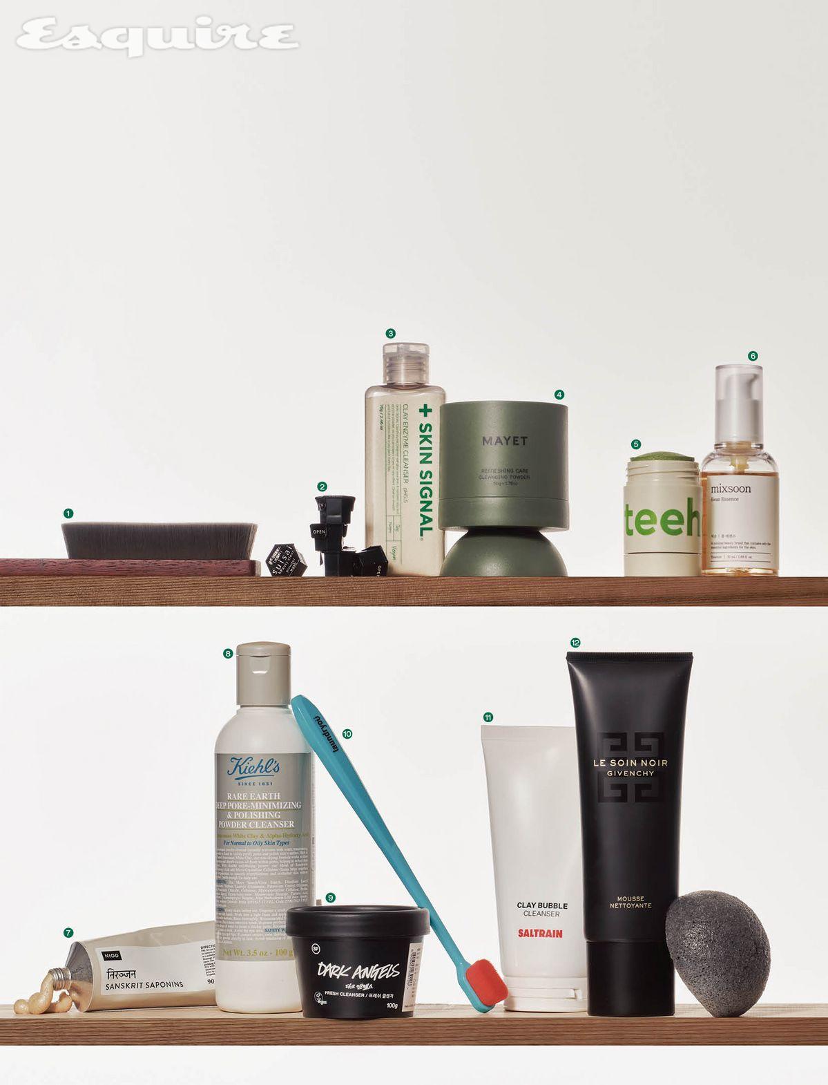 1 온도와 습도 변화에 강한 멀바우나무 소재 브러시. 솜털처럼 부드러운 초미세모가 자극 없이 모공을 청소한다. 702 스위핑 클렌징 브러시 4만8000원 더툴랩. 2 모로칸 라바 클레이와 차콜 파우더가 블랙헤드, 묵은 각질, 피지를 제거한다. 뷰티 클리어 블랙 파우더 워시 32ea/2만4000원 수이사이. 3 약산성 포뮬러가 피부 손상 없이 매끈한 피부로 가꿔준다. 화이트 클레이 효소 클렌저 70g/3만2000원 스킨시그널. 4 페퍼민트 오일 성분이 세안 후 피부 온도를 내려 건강하게 가꿔준다. 리프레싱 케어 클렌징 파우더 50g/4만5000원 마예트. 5 레몬 제스트와 실리카 성분이 푸석한 피부에 활력을 불어넣는다. 클리어링 베리 클레이 마스크 스틱 35g/2만1000원 티히히. 6 쫀쫀한 텍스처가 모공 속 피지를 부드럽게 녹이고 수분을 공급한다. 콩 에센스 50mL/3만5000원 믹순. 7 아유르베다 사포닌을 농축한 클렌징 밤. 조밀한 알갱이가 피부 표면의 죽은 각질을 씻어낸다. 산스크리트 사포닌스 90mL/3만5800원 니오드. 8 아마존 화이트 클레이가 모공을 막고 있던 노폐물과 피지를 깨끗이 흡착한다. 레어 어스 파우더 클렌저 100g/5만1000원대 키엘. 9 점토 같은 제형을 물에 개어 사용하는 클렌저. 다크엔젤스 100g/2만2000원 러쉬. 10 빽빽한 0.07mm 초미세모로 콧볼, 눈 앞머리, 미간 등의 부위까지 섬세하게 케어할 수 있다. 포어 클리닝 브러쉬 6000원 런드리유. 11 미네랄이 풍부한 천연 블랙 머드 덕에 세안 후에도 땅김 없이 촉촉하다. 120mL 5만5000원 솔트레인. 12 내장된 곤약 스펀지로 거품을 내 마사지하면 피붓결이 매끄럽게 정리된다. 르 스왕 느와 페이스 클렌저 125mL/14만3000원 지방시뷰티. CLEANSING