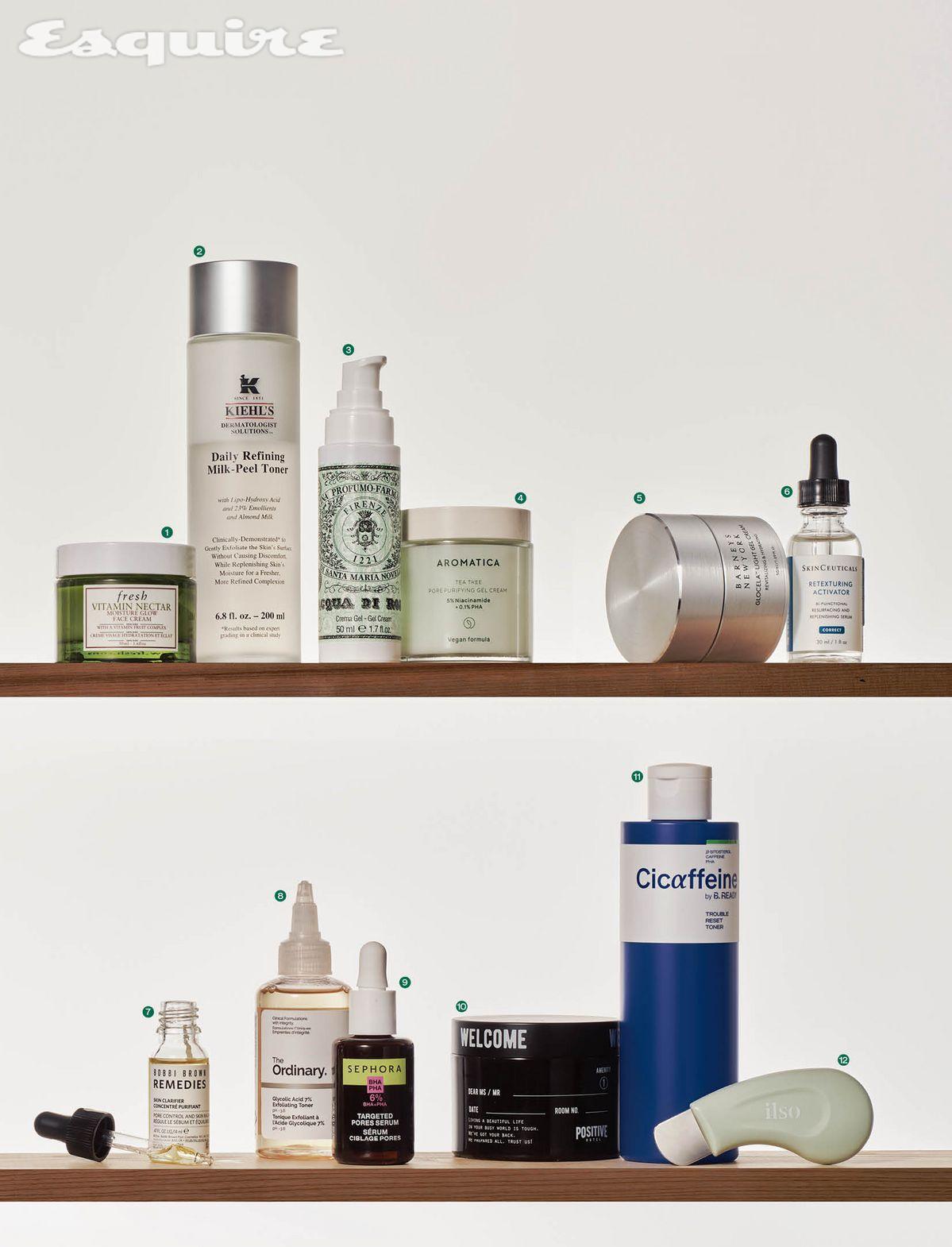 1 비타민 C, E, B5 성분이 피부 톤을 밝혀준다. 바이타민 넥타 모이스처 글로우 페이스 크림 50mL/7만4000원대 프레쉬. 2 각질은 물론 미세먼지까지 완벽하게 제거해 모공을 정돈한다. 밀크 필링 토너 200mL/8만7000원 키엘. 3 산뜻하게 흡수되는 젤 타입 포뮬러가 유수분 밸런스를 맞추고 모공을 청소한다. 아쿠아 디 로즈 젤 크림 50mL/9만8000원 산타마리아노벨라. 4 나이아신아마이드가 피지 분비를 막고 LHA 성분이 넓어진 모공을 쫀쫀하게 관리한다. 티트리 포어 퓨리파잉 젤 크림 100mL/3만2000원 아로마티카. 5 클라우드베리 시드 성분이 칙칙해진 피부에 생기를 불어넣는다. 글로셀라™ 라이트 젤 크림 50mL/13만8000원 바니스뉴욕뷰티. 6 조밀한 수분 입자가 빠르게 스며들어 피붓결을 매끄럽게 가꾼다. 리텍스처링 액티베이터 30mL/9만5000원대 스킨수티컬즈. 7 세안 직후 사용하는 퍼스트 오일. 모공 속 노폐물을 정화해 피부 본연의 힘을 기른다. 스킨 클래리파이어 솔루션 14mL/8만9000원 바비 브라운. 8 머리부터 발끝까지 모든 피부에 사용할 수 있는 산성 토너. 글리코릭 애시드 7% 엑스폴리에이팅 토너 100mL/9200원 디오디너리. 9 번들거림 없이 보송하게 모공을 청소한다. 타겟티드 포어 세럼 30mL/3만4000원 세포라. 10 죽탄 성분이 함유된 메시 패드가 모공 속 숨은 미세먼지를 흡착한다. 대나무 숯 퓨리파잉 패드 3만2000원 파지티브호텔. 11 그린커피빈에서 추출한 카페인 성분이 모공을 눈에 띄게 줄여준다. 시카페인 트러블 리셋 토너 250mL/2만5000원 비레디. 12 세안으로 피부를 부드럽게 불린 뒤 스테인리스 날로 가볍게 밀면 블랙헤드, 각질, 피지, 노폐물이 말끔하게 정리된다. 딥 클린 마스터 1만5000원 일소. MOISTURIZING
