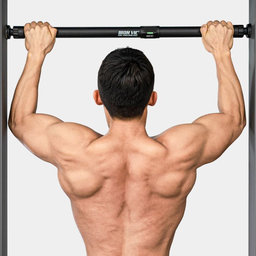 풀업(턱걸이)를 할 땐 자세가 중요해요. 무리하면 어깨를 다칠 수 있거든요. 주변에 의자가 있다면 발을 올려 놓아도 괜찮아요. 양손 그립을 다르게 하며 수행하면 등 전반에 골고루 자극이 온답니다.