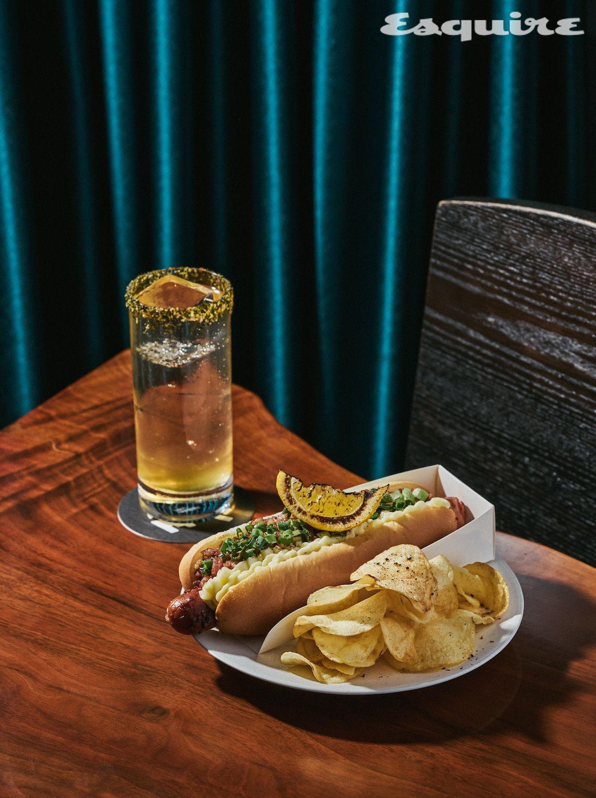 기슭은 불광동 외진 주택가에 자리한 조용한 바지만 수준 높은 칵테일과 특유의 재치로 늘 새로운 즐거움을 안겨주는 곳이다. 일단 자리에 앉자마자 내어주는 기본 안주, 가게 분위기와 사뭇 언밸런스한 뻥튀기부터 흥미롭다. 쫀드기나 뽀빠이 같은 추억의 간식들, 한 번씩 스페셜로 만드는 컵라면을 업그레이드한 요리, 핫도그 같은 메뉴는 또 어떻고. 특히 정성스럽게 구운 소시지와 다진 베이컨, 크림치즈를 곁들여 제대로 미국 남부식을 표방한 핫도그는 기슭의 시그너처라고 할 만한 메뉴다. 가격, 자태, 맛 모든 측면에서 예상을 뛰어넘는 감동을 안기기 때문이다. 한입 베어 물 때 가장 직관적으로 떠오르는 건 롱아일랜드 아이스티 같은 칵테일, 즉 콜라 역할을 대신해줄 음료지만 그건 기슭이라는 바의 묘미를 100% 즐긴다고 하기에는 다소 아쉬운 조합이다. 개인적으로 추천하는 페어링 드링크는 강기슭이다. 피트 위스키에 직접 만든 피클 주스, 탄산수를 섞어 만드는 롱드링크 칵테일. 잔에 직접 만든 한국식 후리카케를 리밍해 내어주는데, 덕분에 본인들도 ‘변태적 칵테일’이라 표현할 만큼 독특한 맛을 낸다. 음식에서나 느낄 법한 맛이 칵테일에서 난달까. 재미있는 경험을 선사해줄뿐더러, 핫도그 같은 음식과 함께 먹으면 감칠맛에 한층 깊이를 만들어준다. 특히 아드벡을 기주로 쓰면 더 절묘하다. 특유의 훈연 향이 입을 감싸고, 핫도그의 풍부한 맛이 그에 어우러지며, 후리카케의 바다 향과 감칠맛, 아드벡의 고소한 맛과 피티함, 피클 주스의 새콤함과 짭조름함이 입안에 다양한 층위의 여운을 남긴다. 한은규(글렌모렌지 앰배서더)