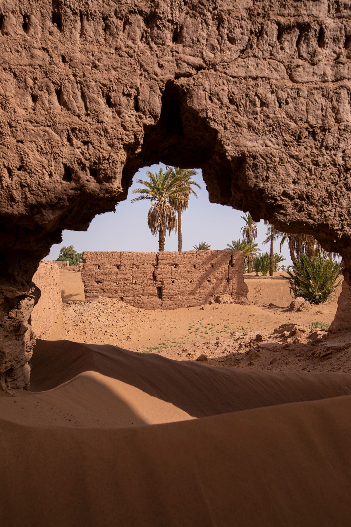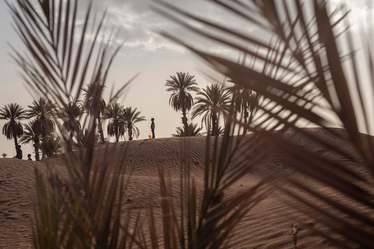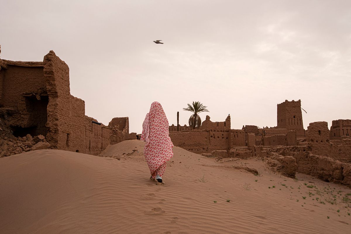 어린 소년이 므하미드 엘 기즐렌의 사구 꼭대기에 서 있다. 므하미드는 드라 계곡의 오아시스 중 사하라 사막에 가장 가까운 곳으로, 한때는 이 지역의 왕성한 대추야자 거래의 심벌이었지만 요즘은 마치 종말론적 영화의 세트장 같다. 주민은 8000명뿐이며, 최근 몇십 년간 오아시스의 표면적은 3 분의 1로 줄어들었다. 얼마 남지 않은 오아시스 역시 문자 그대로 사막이 집어삼키고 있다. 가뭄이 야자수림을 망쳐놓는 바람에 다시 돌본다는 것도 거의 불가능에 가까워졌다.