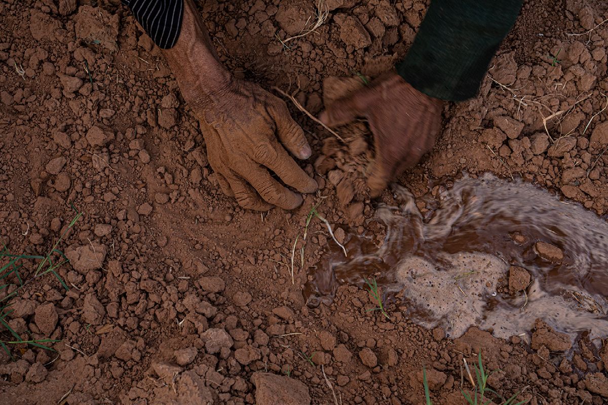 자우이아 엘 하나의 개간 수로로 물이 흐르도록 농부가 흙을 치우고 있다. 오아시스는 지하수, 산, 강, 호수, 샘에서 오는 물을 밭과 가구에 공급한다. 경사를 활용하고 증발을 막는 ‘카테라’라는 복잡한 지하 수로들을 따라 물이 흐른다. 가뭄은 늘 오아시스에서 삶의 일부였지만, 과거에는 주민들이 순환 패턴에 맞추어 식량을 저장하고 수자원을 주의 깊게 관리해 가뭄을 넘길 수 있었다. 이제는 기후변화가 기온을 끌어올리고 가뭄을 길게 만들어 과거의 자연적 패턴에 지장을 초래하고 있다.