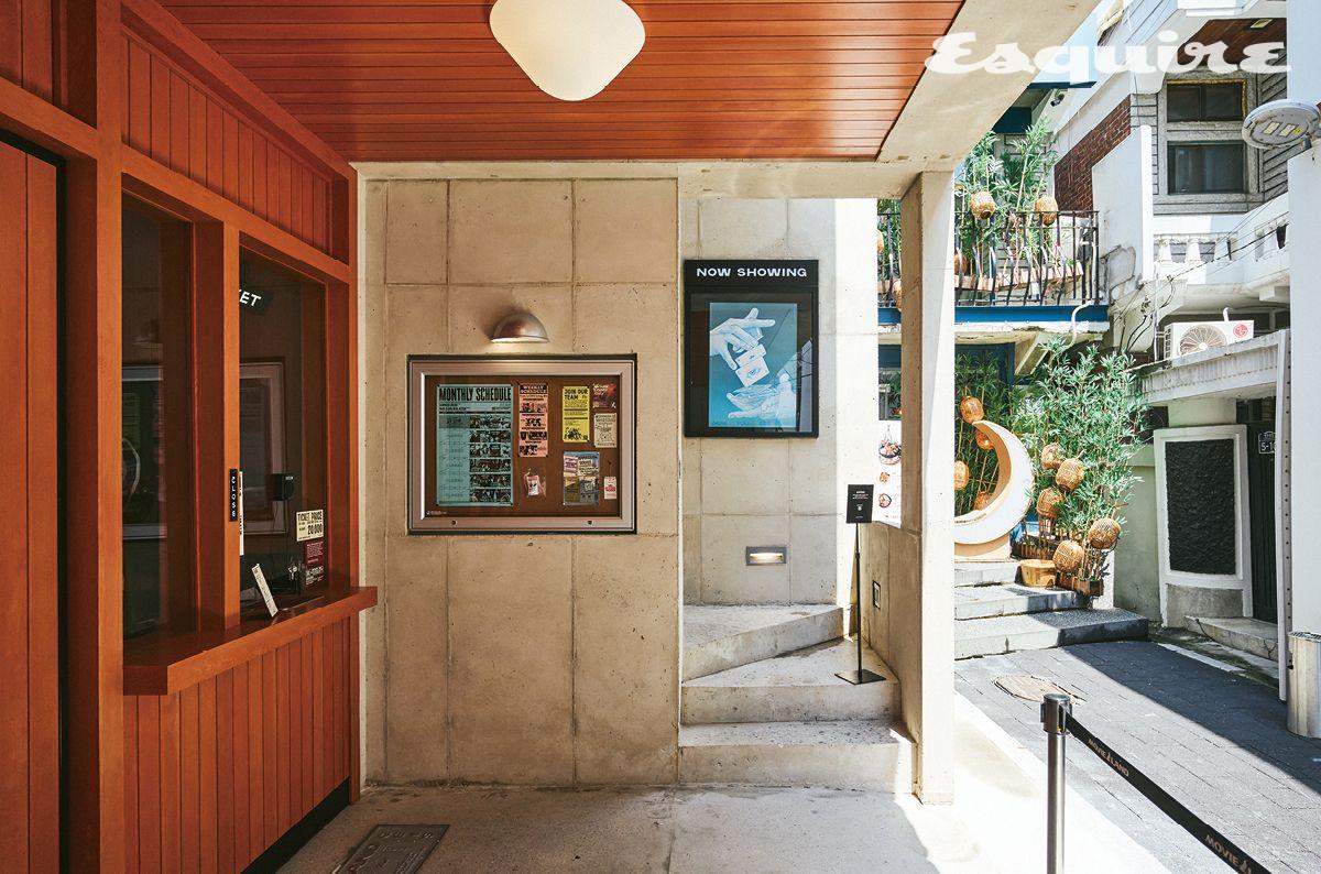 무비랜드는 30석 규모의 초소형 극장이다. 매달 큐레이터 한 명을 초빙해 그가 선정한 영화 4편을 하루 3회씩 상영하고 있다. 예를 들어 취재를 진행한 8월 초에는 배우 박정민이 고른 <아는 여자> <스내치> <베이비 드라이버> <나우 유 씨 미>가 상영 중이었고, 색소포니스트 김오키가 고른 <레옹> <무드 인디고> <도쿄 소나타> <지구를 지켜라!>가 다음 순서를 기다리고 있었다. 그들이 왜 해당 작품들을 골랐는지는 유튜브 ‘무비랜드 라디오’에 대담 형태로 소개되어 있다. “단순히 극장 티켓 값이라고 생각하면 2만원이 비쌀 수 있다고 생각해요. 하지만 저희가 실질적으로 제공하는 건 유튜브 콘텐츠부터 리플릿, 티켓까지 한 영화를 둘러싼 경험과 다양한 이야깃거리들이죠.” 무비랜드 역시 주목적이 이윤인 공간은 아니다. ‘새로운 방식으로 일하는 사람들을 위한 메시지’를 담는 브랜드 모베러웍스에서 만든 일종의 쇼룸 개념이다. ‘이야기를 파는 브랜드의 쇼룸은 어떤 형태여야 하는가’ 하는 논의 과정에서 극장이라는 답이 도출되었다는 것이다. 그렇다면 그 극장의 입지가 성수동이 된 이유는? “성수동이 뜨기 때문이죠.” 권지우 기획자는 멋쩍다는 듯 웃으며 말했다. “브랜드도, 유동인구도 굉장히 많잖아요. 모순적이지만 저희는 그런 활기찬 동네의 숨은 골목에 자리 잡기를 원했죠. 성수동의 이미지가 가진 낙차도 좋았고요. 굉장히 빠르게 바뀌어가는 곳인가 하면 아주 오래된, 변하지 않는 동네라는 느낌도 있잖아요.” 무비랜드의 입지로 몇 가지 대안이 있었지만, 아무튼 재미있는 공간을 만들려면 성수동만 한 공간이 없을 것 같았다고 했다.