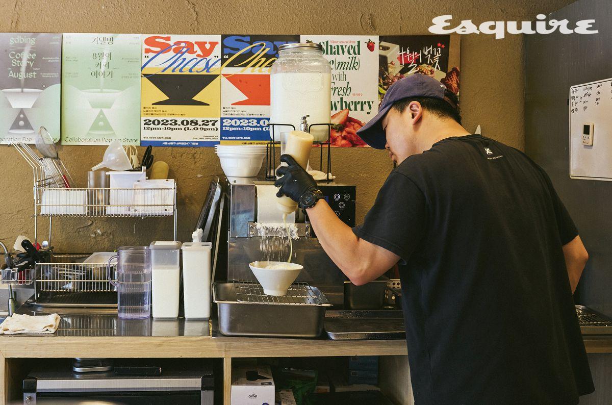 성수동이라고 모두 동일한 운명을 품고 있는 건 아니다. 기댈빙이 위치한 곳은 재개발 단지로 임대료가 놀라울 정도로 저렴하고, 성동구에서 프랜차이즈 입점을 제한하면서 청년들이 뭘 펼쳐볼 여지가 생긴 지역이다. 기댈빙의 업태는 전부 그 환경에서 나왔다고 해도 과언이 아니다. “이 상권에 빙수가 없더라고요. 제가 잘된다고 해서 유명 브랜드가 들어올 확률도 적고요. 그러면 성수동 로컬들을 고객으로 하되, 멀리서도 찾아오도록 차별화된 포인트가 있으면 되겠다고 생각한 거예요.” 실제로 촬영을 진행한 날에도 다채로운 성향의 손님이 가게에 머물다 갔다. 커플 단위 손님부터 여성 단체 손님, 일본인 관광객들, 주변 상인들로 보이는 어르신들까지. 김종찬 대표는 ‘떡 고명을 뺐다’는 명목으로 동네 어르신들에게 팥빙수를 좀 더 저렴한 가격에 내고 있기도 하다. 올해로 성수동에 산 지 5년째 된다는 그는 진심으로 이 동네를 아끼는 듯했다. “사실 기댈방을 열기 전에 제가 너무 열심히 살았는지 마음의 병이 생겨서 한동안 쉬었거든요. 성수동은 생각이 많아지면 달릴 숲과 강변이 있어서 좋았죠. 기댈빙의 이름을 지어준 것도 일요일마다 나가는 서울숲 쓰레기줍기 봉사활동에서 만난 마케터예요. 제가 힘들어할 때 도와준 분들이 있었고, 그분들도 열심히 살며 자기만의 아픔을 품게 된 분들이었고, ‘그러면 우리가 서로 기댈 수 있는 곳을 만들자’라고 생각했던 거죠. 성수동이 자꾸 핫한 것만 좇는 방향으로 바뀌어가는데 우리는 그러지 말자고요. 저는 여기에 그 이름을 내건 것만으로도 벌써 뭔가를 성취한 것 같았어요.”