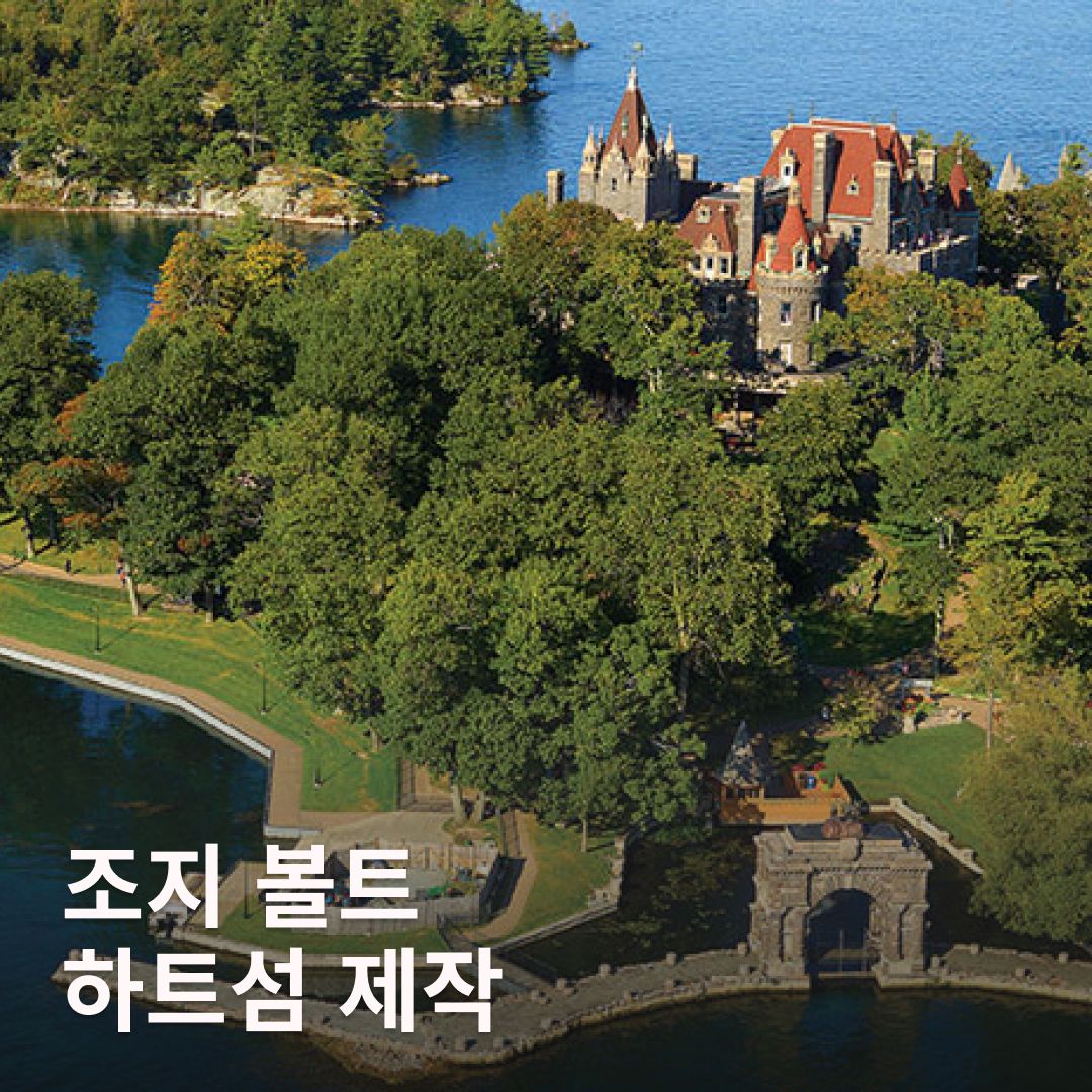 미국의 백만장자였던 조지 볼트는 아픈 아내를 위해 섬을 사들여 하트 모양으로 깎았어요. 섬 한가운데 호화로운 볼트성을 지어 그녀를 쉬게 하려고 했지만, 결국 아내는 완공을 보지 못하고 떠났다고 해요.