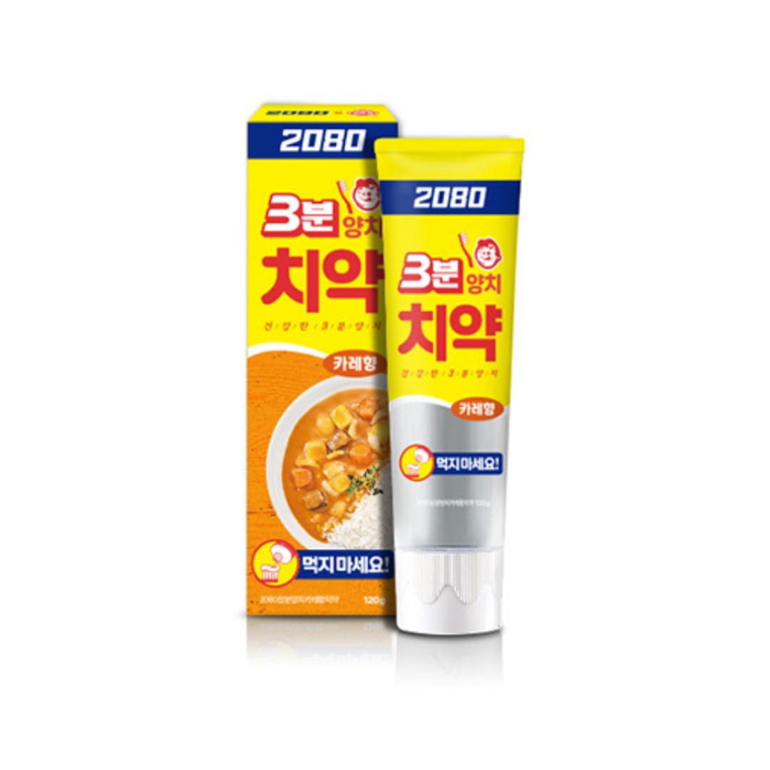 3분 카레로 유명한 오뚜기와 치약 브랜드 2080이 협업해 출시한 카레맛 치약. 입안에 넣는 순간 카레맛은 물론 카레향이 확 난다고 해요. 2080 X 오뚜기 제품.