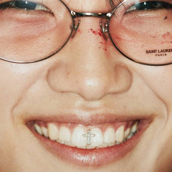 라운드 브릴리언트 다이아몬드를 세팅한 티파니 하드웨어 라지 링크 브레이슬릿 가격 미정 티파니. 약지에 낀 티타늄 소재의 포스텐 윈치 링 175만원 프레드. 핑크 체크 셔츠, 검지에 낀 로고 링 가격 미정 아크네 스튜디오. 포인트 맨 펜던트 네크리스, 포인트 맨 백팩 모두 가격 미정 푸츄라 x 마크 제이콥스.