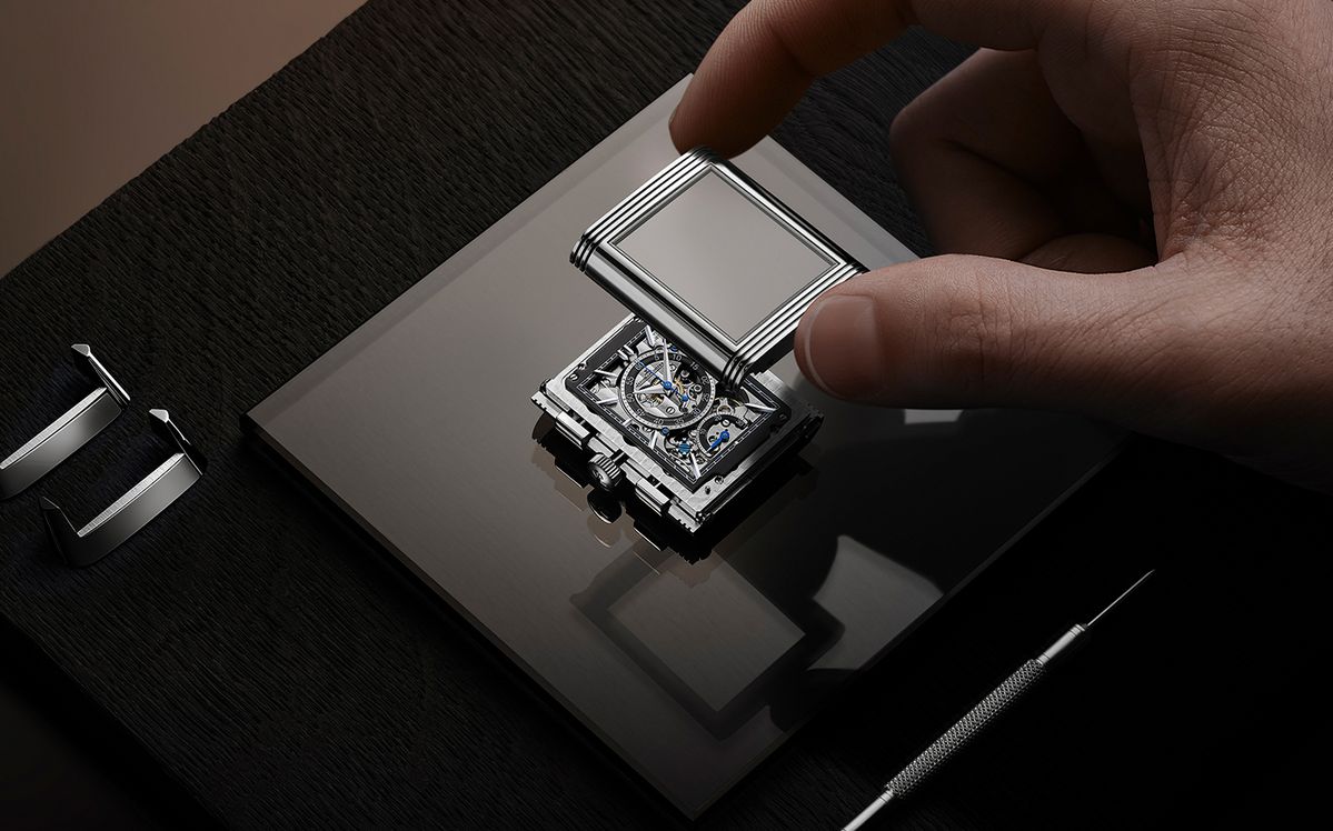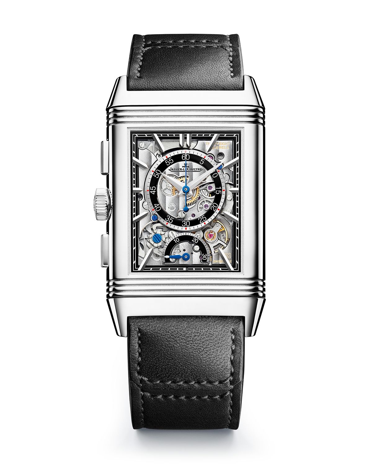 예거 르쿨트르의 감동적인 크로노그래프 메커니즘을 감상할 수 있는 ‘리베르소 트리뷰트 크로노그래프’.