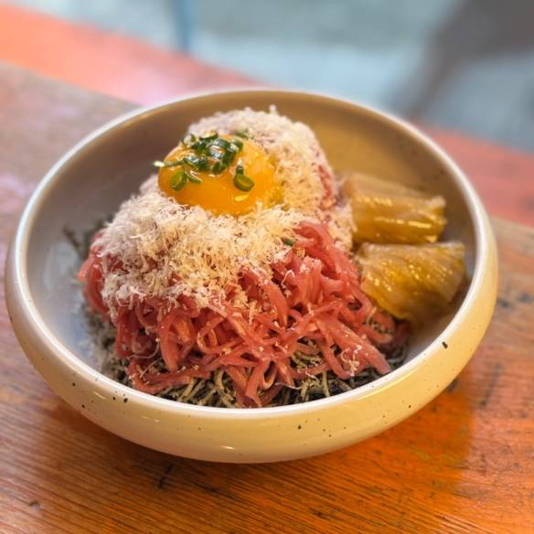 다진 김치와 간 양파 양념이 들어간 깊은 맛의 사골 국물이 일품