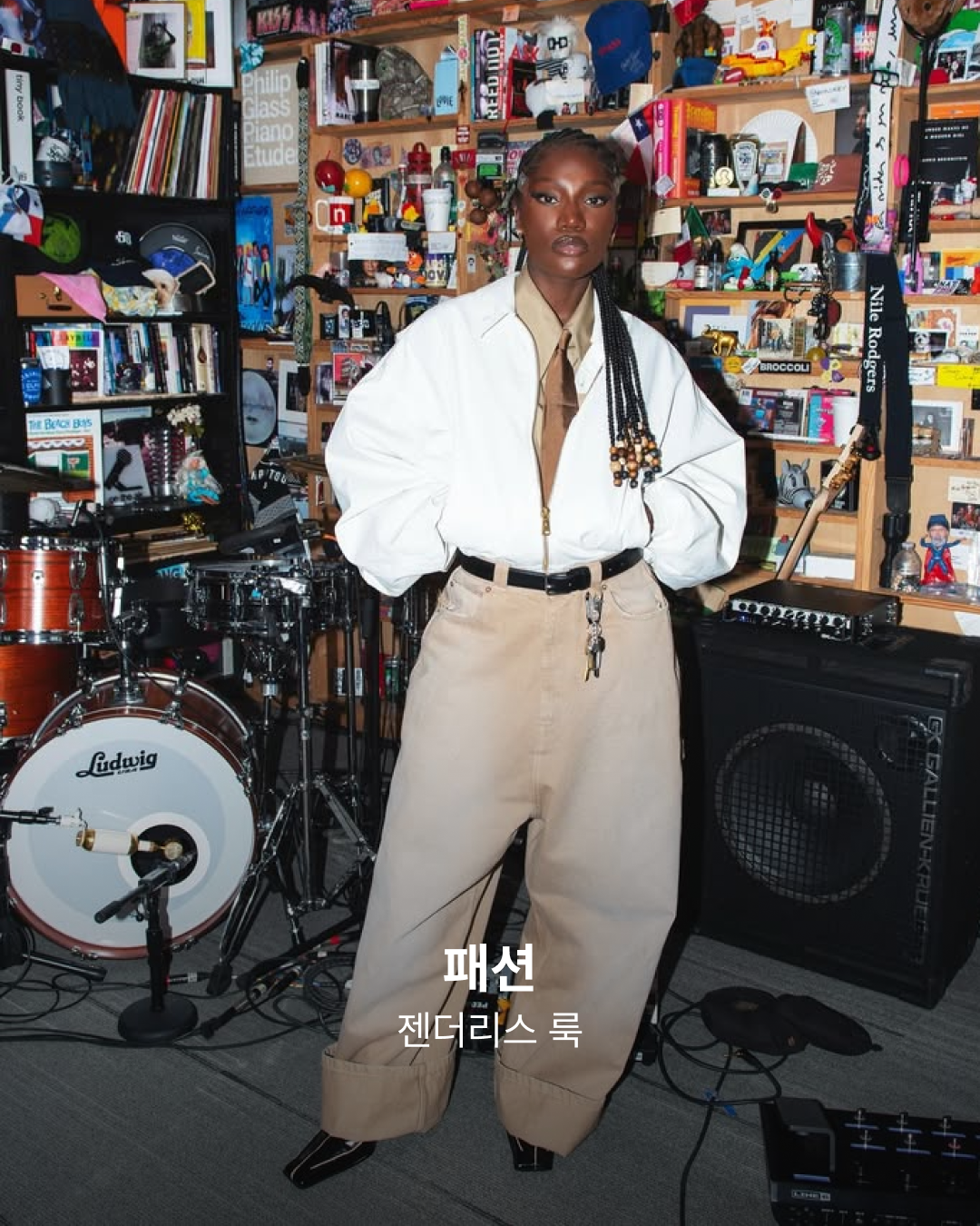 도이치는 지난 12월 'The Late Show' 라이브 무대에서 독특한 스타일링으로 큰 주목을 받았습니다. 도이치와 댄서들이 모두 동일한 구찌 의상을 착용하고 길게 땋은 머리를 이어, 마치 세 쌍둥이를 연상시키는 비주얼을 선보였죠. 이외에도 페이스 리프팅 테이프를 보이게 붙이는 파격적인 메이크업부터 젠더리스 프레피 룩, 팬츠리스 룩을 활용한 오피스 세이렌 스타일까지! 90년대 바이브를 필두로 그만의 개성을 돋보이게 하는 스타일링을 엿볼 수 있습니다.