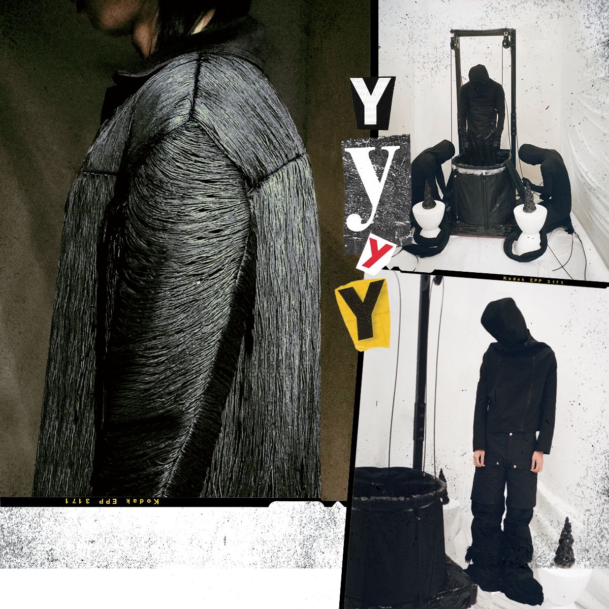 브랜드의 시작 거리에서의 행위예술이나 설치미술 같은 퍼포먼스 작업 끝에 2024년, 패션과 예술을 결합한 하나의 예술 플랫폼을 론칭했다. 주로 분노, 우울, 흉터, 왜곡과 같이 인간이 느끼는 불완전하고 나약한 감정을 다룬다. 어둡고 기괴한 이미지, 옷의 컬러가 대부분 블랙인 이유도 여기에 있다. 영감의 원천 구로사와 기요시의 <큐어>, 테라야마 슈지의 <전원에 죽다>. 비현실적이고 기괴한 연출이 특징인 두 영화에서 큰 영향을 받았다. 디자인 과정 보통의 브랜드처럼 시즌에 맞춰 움직이지 않는다. 만들고 싶으면 만드는 거다. 둘 다 자주 망상에 빠지는 편인데, 그것을 주제로 토론하다 작업이 시작될 때도 있다. 시그너처 피스 특수 제작된 거칠고 굵은 실로 머리를 심듯 가닥가닥 꿰맨 보더라인 퍼 재킷. 이 재킷에 우리 영혼을 깃들인다는 마음으로 심혈을 기울여 작업했다. 동경하는 브랜드 레드불. 밧줄타기와 스카이다이빙, 스키점프… 세계 신기록에 도전하는 그들을 보면 가끔은 음료 브랜드라는 사실마저 잊는다. 제품과 관련 없는 퍼포먼스 같지만 결국 하나의 뜻으로 연결되는 완벽한 브랜딩. 레드불처럼 자유롭고 도전적인 브랜드로 남고 싶다. 앞으로의 계획 예술적 가치를 우리의 시선으로 재해석하는 프로젝트를 기획 중이다. 사람들이 직접 참여해 놀 수 있는 일종의 사회 실험이 될 것 같다. 물론 그 중심에는 패션이 있을 거고.