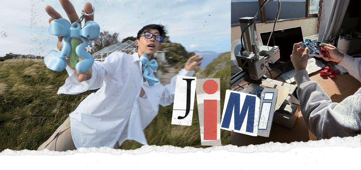 브랜드의 시작 의류학과를 졸업한 뒤 곧장 브랜드를 만들었다. 처음에는 개인적인 작업물을 보여주는 게 전부였지만, 패딩 소재 가방을 판매하면서 본격적인 운영을 시작했다. 정체성 지미는 내가 상상하는 것들을 구현하는 창구다. 내가 직접 룩북 모델로 서는 것도 그래서다. 내 상상 속 이미지는 내가 제일 잘 표현할 수 있으니까. 디자인 과정 영화나 뮤직비디오 속 주인공의 옷을 만드는 상상을 자주 한다. 현실에는 없는 화려한 모습의 것들로. 그리고 그런 상상을 현실로 구현해내는 방식에 대해서도 고민한다. 일상에서 본 적 없는 만화적인 옷. 이런 비현실적인 디자인을 현실에서 쓰는 엉뚱함이 지미만의 특징인 것 같다. 액세서리를 선택한 이유 내가 만드는 옷을 상품화하기엔 어려움이 있다. 대량생산도 쉽지 않고. 액세서리는 내 디자인을 압축적으로 보여주기도 쉽고, 일상에서 즐기기도 좋지 않을까 생각했다. 물론 비중이 줄었을 뿐 옷을 시작할 준비는 늘 되어 있다. 가장 신경 쓰는 부분 재미의 유무. 평범한 건 재미없다. 영감을 얻는 곳 태국을 정말 좋아한다. 태국 섬들을 여행하며 느낀 자연의 아름다움이 오랫동안 큰 영감이 되고 힘이 된다. 그리고 하나 더 꼽자면 팝 컬처. 신선한 음악과 비주얼이 주는 자극이 있다. 가장 아끼는 물건 나의 동료라고 할 수 있는 3D 프린터. 앞으로의 계획 JIMI의 세계관을 자유롭게 펼치고 싶다. 특이한 건 사실이지만 많은 사람이 자연스럽게 즐길 수 있는 브랜드면 좋겠다. 그래서 요즘엔 디자인에 실용성을 더하려 한다. 조만간 3D 프린터로 만든 홈 리빙 아이템을 공개할 예정이다.