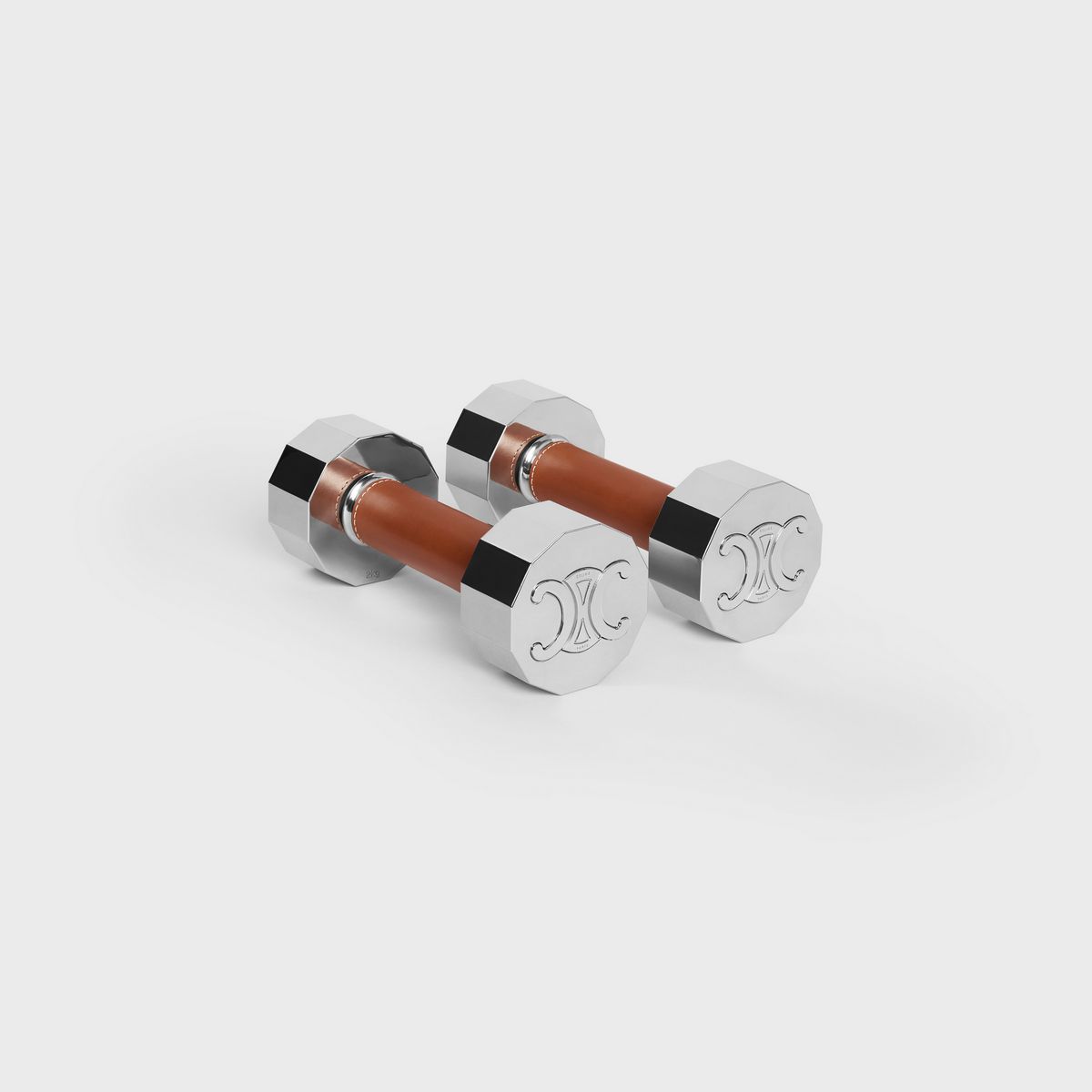 필라테스 셀린느(The Pilates CELINE) 컬렉션은 럭셔리 장인 정신과 기능적 운동 필수품의 만남을 통해 메종의 세계가 전체론적으로 확장한다는 의미를 지닙니다. 리포머, 케틀벨, 덤벨, 요가 매트, 요가 브릭, 증량 팔찌, 줄넘기 등을 포함한 각 제품은 천연 송아지 가죽과 미러 폴리싱 스틸, 코르크와 같은 고급 재료로 제작했습니다. 트리옹프 시그니처로 장식한 운동 액세서리 뿐만 아니라, 넣고 이동할 수 있는 라지 사이즈 캔버스 짐백도 선보였습니다.