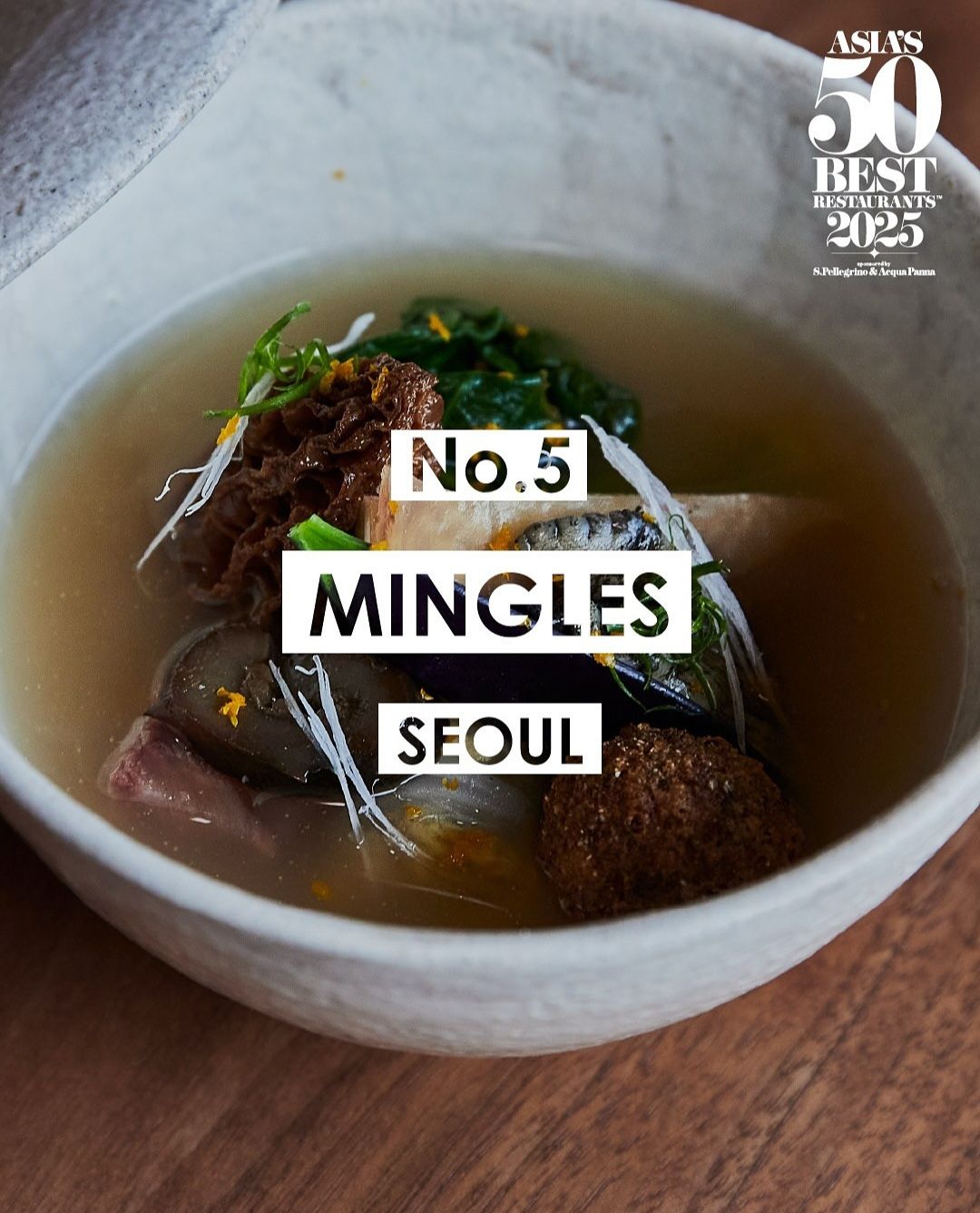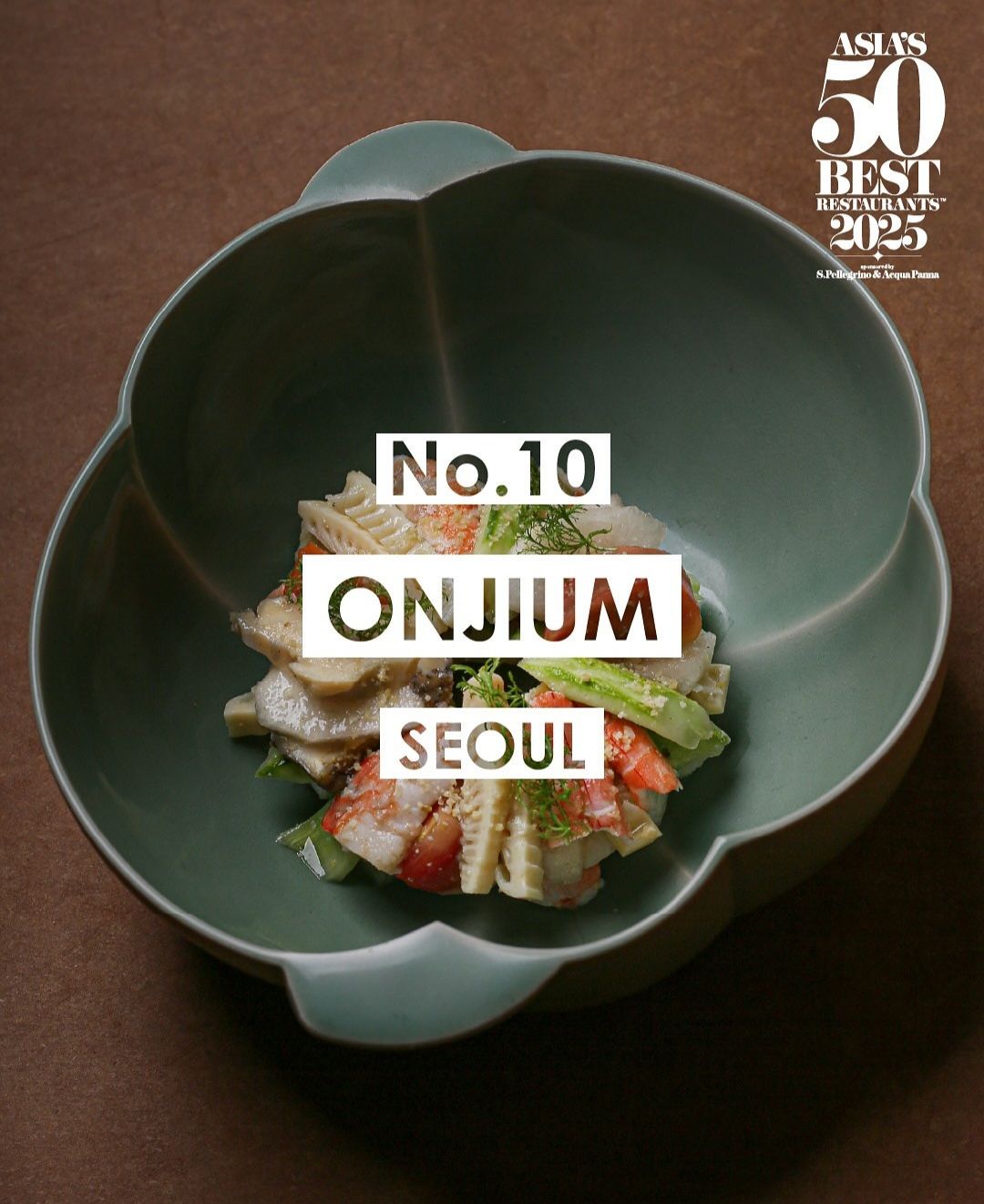아시아 베스트 50 레스토랑 중 한국 식당 4곳이 이름을 올렸다. 2024년과 비교했을 때 랭킹이 대폭 상승했다는 점이 눈에 띄었는데 이타닉 가든이 64위에서 25위, 온지음이 21위에서 10위, 밍글스가 13위에서 5위로 뛰어올랐다. 다만 세븐스도어는 18위에서 23위로 조금 떨어졌다. 그 밖에도 본앤브레드(51위), 솔밤(55위), 스와니예(57위), 알라프리마(61위), 권숙수(62위), 정식당(90위)가 리스트에 포함됐다. 2025년 유일하게 미쉐린 3스타를 받은 밍글스가 아시아 베스트 랭킹에서도 5위를 차지해 현시점 '국내 최고의 다이닝'이라는 타이틀을 공고히 했다.
