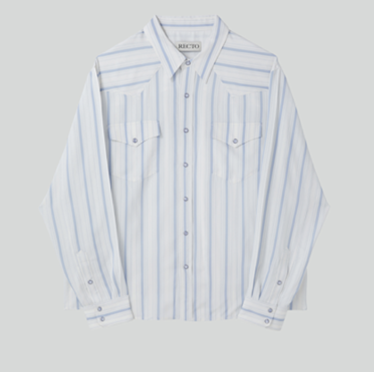프린팅이나 자수 디테일이 있는 셔츠는 피크닉 분위기를 한층 더 살려준다. 단추는 방탕하게 푸르고 소매는 무심하게 걷어 올린다. 슬리브리스에 걸치거나, 활동성이 많은 낮에는 허리에 묶어 연출하는 것도 좋다.