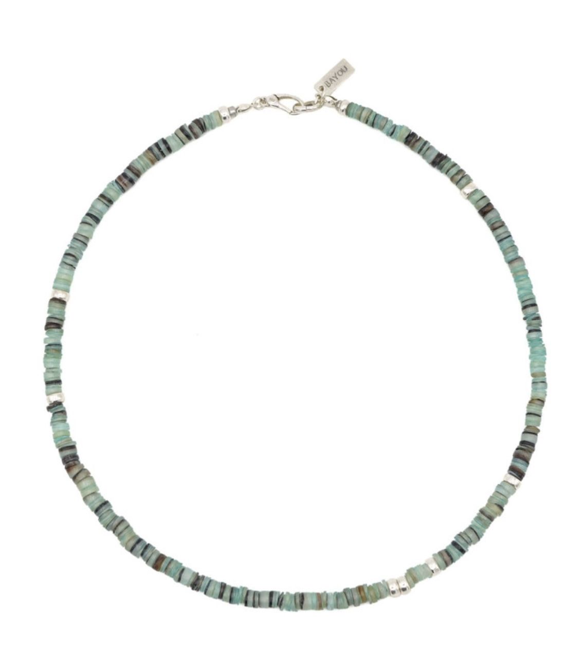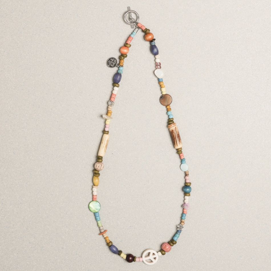 심플한 룩에 주얼리 포인트는 늘 옳은 선택. 진주 네크리스는 길이에 따라 분위기를 달리하고, 이국적인 컬러 비즈 네크리스는 피크닉의 설렘을 더해준다. 작은 아이템으로 룩에 생기를 더해보자.