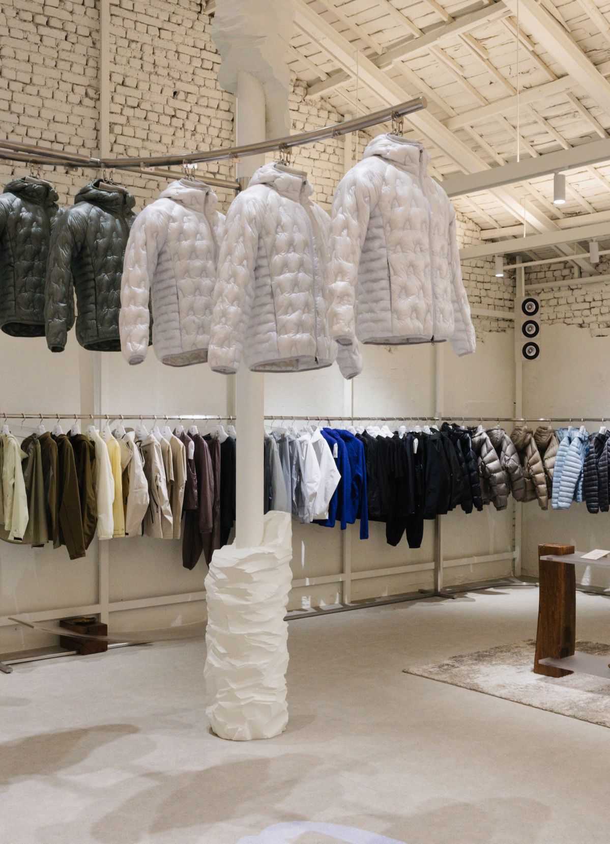 내부 공간은 60년 아웃도어 기술력을 부담 없이 즐길 수 있도록 설계됐다. 다운 충전재로 채운 아트 월, 공중에 떠 있는 듯 연출된 구스다운 오브제, 우드 소재 조형물 등 자연과 기술이 어우러진 시그니처 무드를 곳곳에서 만날 수 있다. 덕분에 아웃도어에 익숙하지 않은 사람들도 편안하게 브랜드 제품들을 경험할 수 있다.