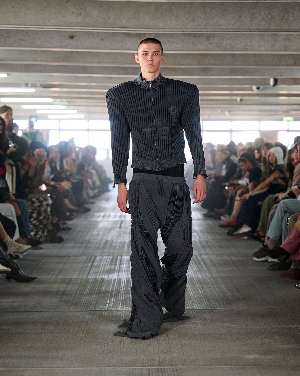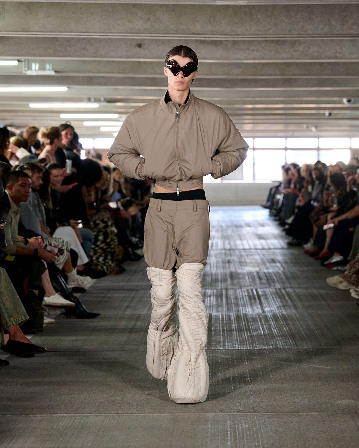새깅을 시도해보고 싶다면 피디에프(PDF)의 2026 S/S 컬렉션이 좋은 참고가 된다. 허리 위로 드러나는 복서에는 컬러풀한 패턴부터 레오퍼드, 체크까지 다양한 디자인이 눈에 띈다. 새깅을 더욱 특별하게 즐기고 싶다면 존재감 있는 벨트로 레이어를 더해주는 것도 방법이다. 볼드한 장식이 더해진 벨트라면 자연스레 허리에 시선을 집중시킬 수 있다. 또한 복서와 팬츠가 한 벌처럼 디자인된 하이브리드 팬츠는 간편하게 새깅 무드를 완성해준다. 런웨이 위 모델들처럼 한 손으로 팬츠를 살짝 잡고 여유 있게 걷는 제스처 또한 잊지 말 것.