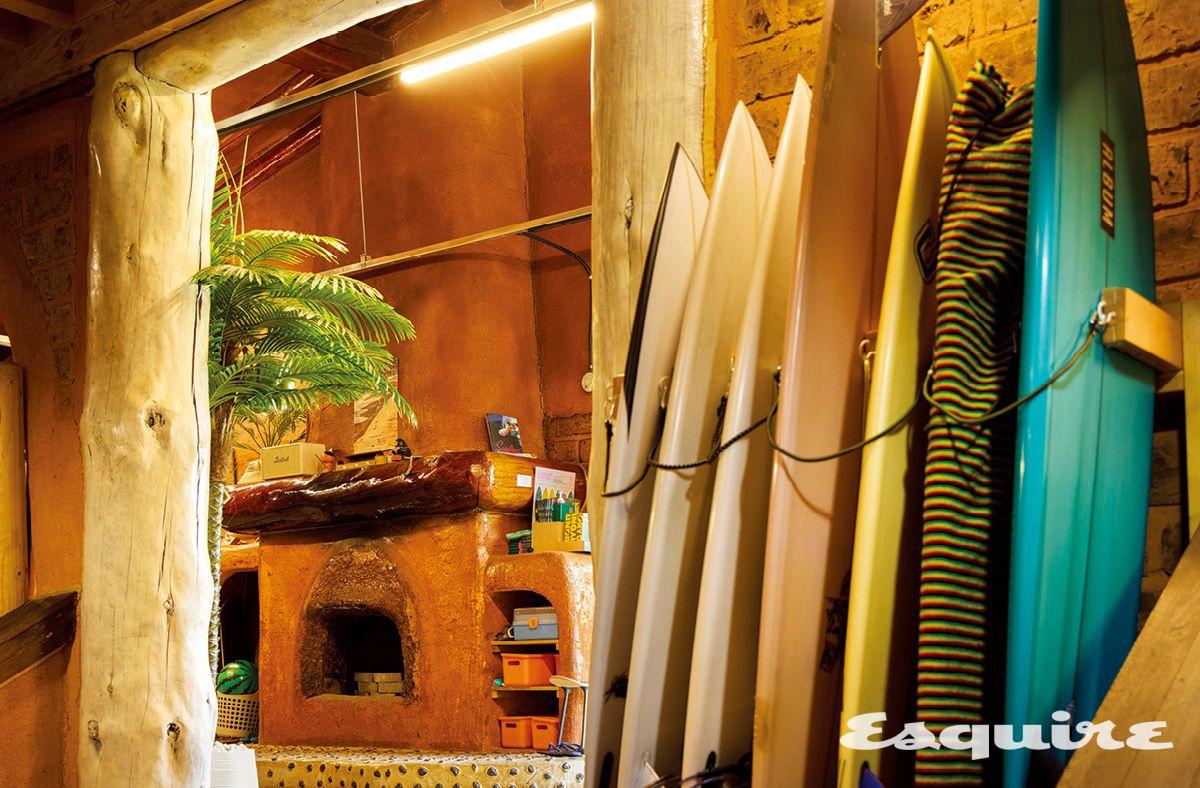 두 가지 이유가 있어요. 첫 번째는 양양과 달리 이곳 금진해변 주변은 조용하고 한적해서 마음에 들었어요. 서핑숍도 몇 개 없고요. 두 번째는 황토찜질방으로 쓰였던 이 건물이 독특해서 좋았어요. 10년 넘게 서핑을 했지만, 황토찜질방을 개조한 숍은 본 적이 없거든요. 다른 숍보다 샤워실 수압이 강한 게 저희 자랑 중 하나입니다.(웃음) 서핑숍을 운영할 땐 서핑복에서 나오는 습기 때문에 습도를 적당히 유지하는 게 중요한데, 황토벽 덕분인지 곰팡이가 슬지 않는 것도 장점이에요.