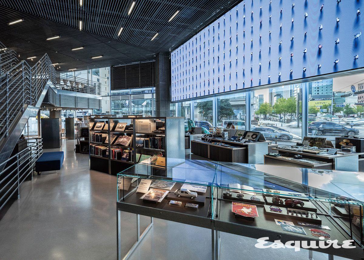 자동차 마니아를 위한 참새 방앗간이 돌아왔다. 11년 만에 리뉴얼 오픈한 현대모터스튜디오 서울 이야기다. ‘쇳물부터 자동차까지’라는 콘셉트를 위해 설치한 파이프와 강판 등 자동차 관련 소재 인테리어는 그대로 두되, 일본 츠타야 서점의 기획·운영을 맡고 있는 ‘CCC’와 협업해 내부 콘텐츠를 새롭게 채웠다. 눈에 띄는 것은 현대자동차뿐만 아니라 포르쉐, 랜드로버, 토요타 등 다른 자동차 브랜드의 자료와 아이템이 다수 진열되어 있다는 점이다. 리뉴얼 오픈을 두고 현대자동차 관계자가 “폭넓은 자동차 문화와 취향을 경계 없이 아우르며, 자동차를 사랑하는 이들과 함께 그 문화를 완성해가는 공간으로 자리매김하고 싶습니다”라고 말한 것과 같은 맥락이다. 예를 들어, 주인공이 토요타 모델을 타고 등장하는 만화책 <이니셜 D>를 누구나 볼 수 있게 진열해놓는다거나, 랜드로버 차량을 타고 오프로드를 달리는 ‘카멜 트로피’를 관련 아이템과 함께 소개하는 식이다. 현대모터스튜디오 서울을