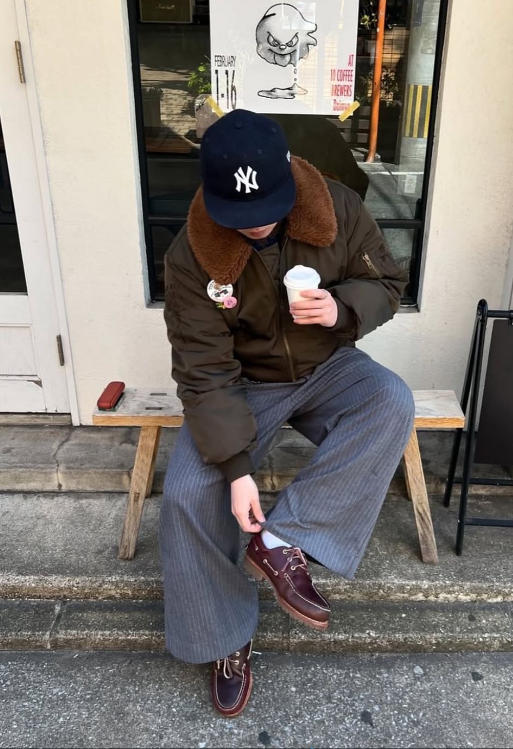보트 슈즈는 겨울에 더 매력적인 아이템이다. 적당히 두께감 있는 컬러 양말과 함께하면 존재감은 더 살아난다. 팬츠 밑단 사이로 자연스럽게 드러나는 컬러 포인트가 전체 스타일의 무드를 바꾸기 때문. 뉴트럴한 재킷과도 잘 어울리고, 데님 팬츠 위에서도 위화감이 없다.