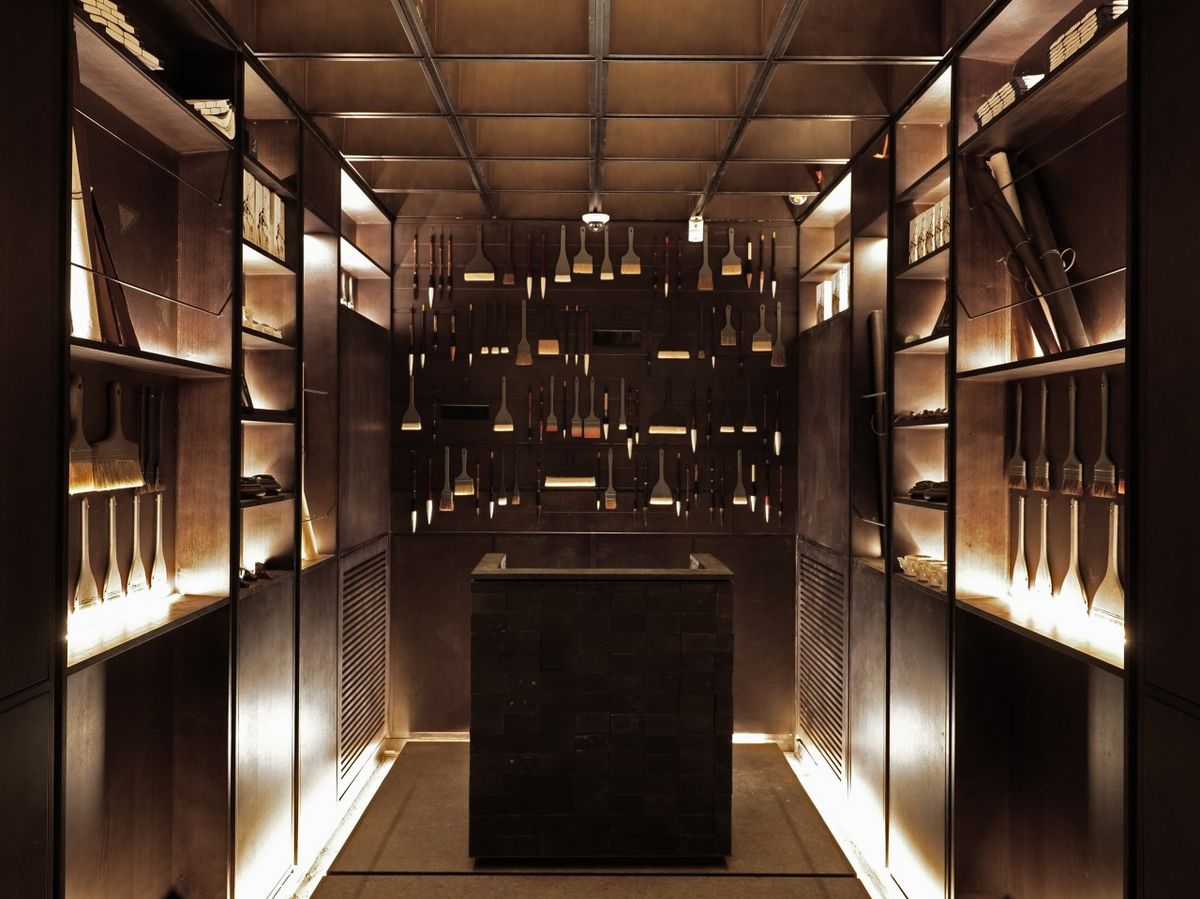 매장 입구와 내부에는 각양각색의 붓이 곳곳에 달려 있는데 이는 교촌만의 조리방식인 ‘붓질’에서 따왔다고. 이름이 붓을 만들어 파는 가게인 ‘필방’인 것도 이러한 이유에서다. 때문에 매장에 간판을 놓는 대신 박경수 무형문화재 필장이 제작한 커다란 붓을 놓았다. 이 거대한 붓을 잡아 당기면 문이 열린다고. 위에 소개한 대표 메뉴, 치킨 플래터도 붓을 이용해 치킨에 소스를 발라먹는 방식이다. 이런 독특한 문화 경험을 할 수 있어 매장에는 내국인보다는 외국인의 비중이 훨씬 높은 편이다.