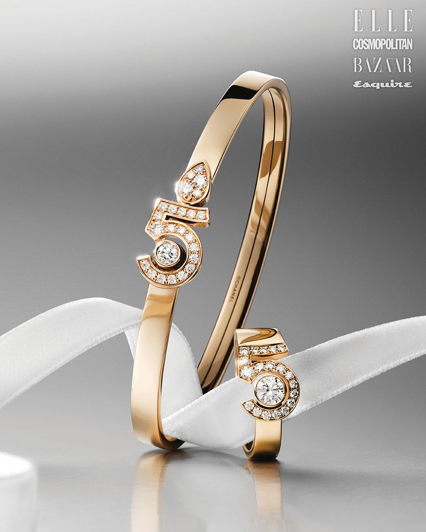 18K 베이지 골드에 다이아몬드를 세팅한 이터널 N→5 브레이슬릿과 이터널 N→5 링은 모두 가격 미정 CHANEL FINE JEWELRY.