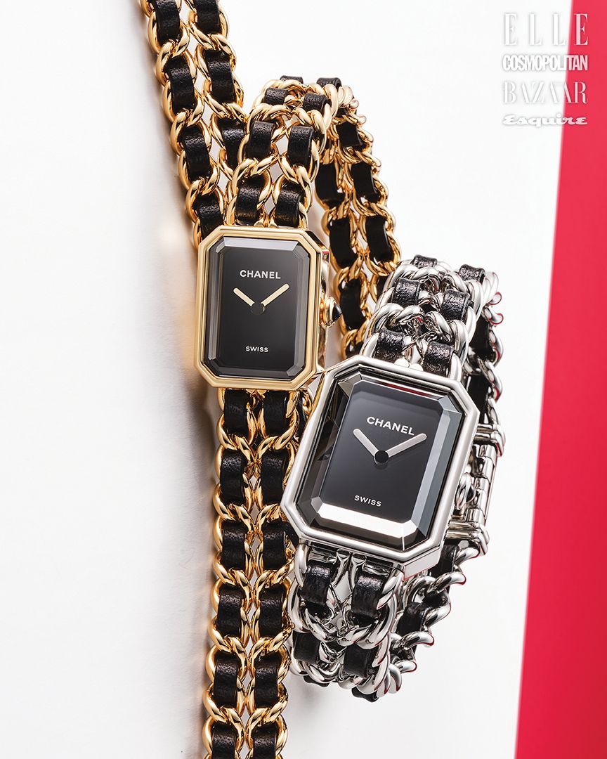 옐로 골드 케이스와 블랙 래커 다이얼 구성의 프리미에르 아이코닉 체인 더블 로우 워치, 스틸 케이스와 블랙 래커 다이얼로 이루어진 프리미에르 아이코닉 체인 워치는 모두 가격 미정 CHANEL WATCHES.