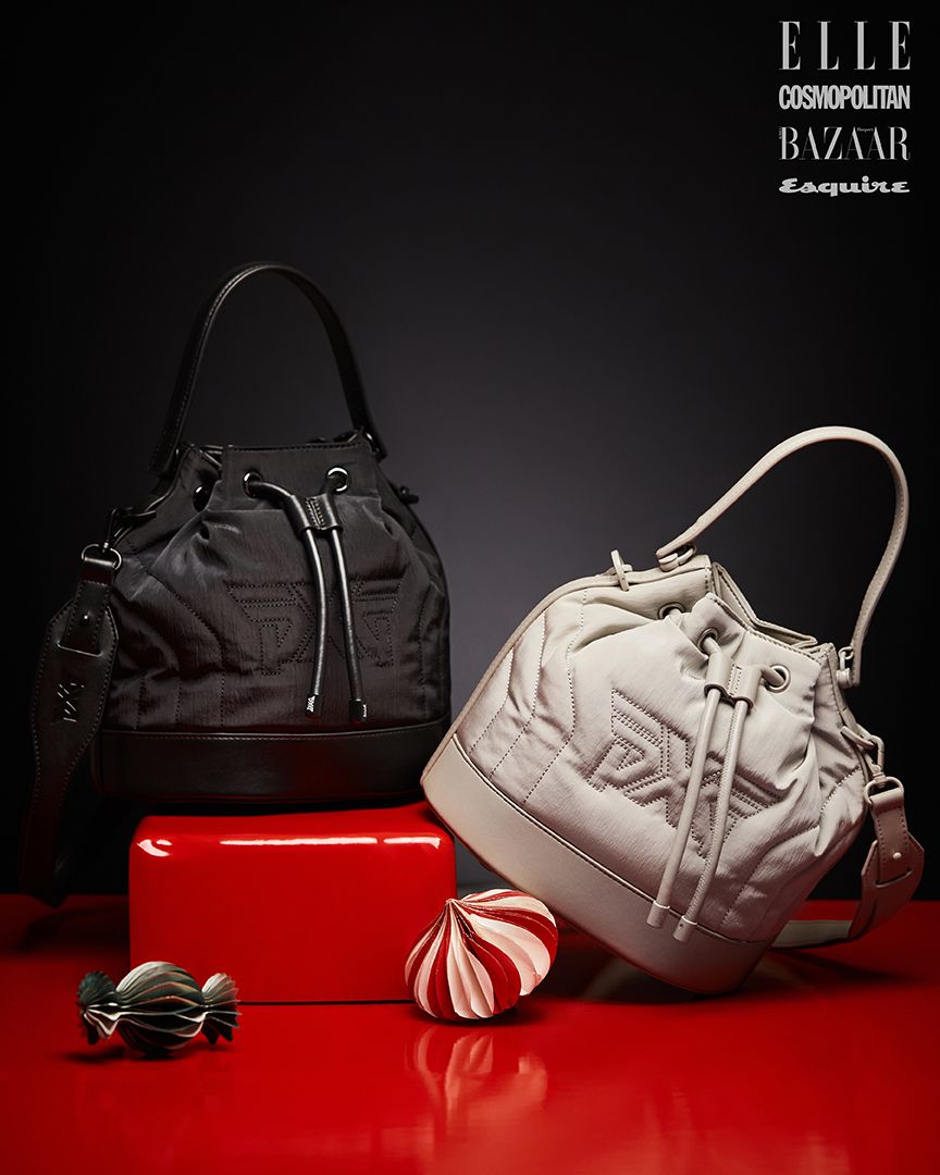 중앙에 로고 자수를 넣은 패딩 버킷백은 각각 39만9천원 모두 PXG.
