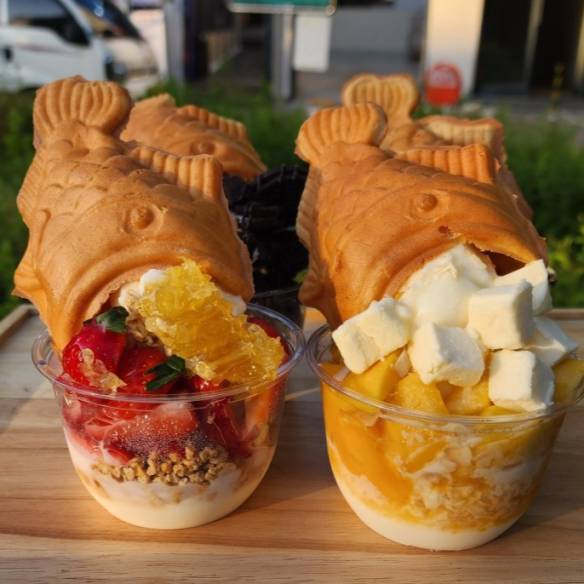 - 모찌고: 일본 모찌 반죽을 활용한 쫀득한 모찌 붕어빵으로, 팥·우유·말차초코·쑥슈크림 등 총 6가지 퓨전 필링이 매력.