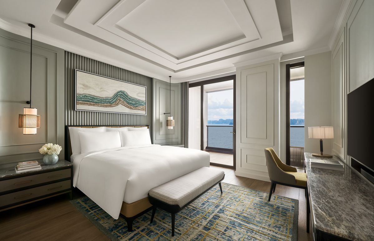 리조트의 건축은 세계적인 설계사무소 WATG가 맡았다. 하롱베이의 전설인 ‘하강하는 용’을 모티프로 육지와 바다, 섬과 만의 흐름을 건축적으로 풀어냈다. 실내 디자인은 태국의 P49 Design이 담당해 베트남 특유의 색채와 질감을 현대적인 럭셔리로 완성했다. 로비는 전통 바구니 배에서 영감을 얻었고, 객실 곳곳에는 청록색 패브릭, 황동 디테일, 물결과 진주를 연상시키는 텍스처가 하롱베이의 풍경을 실내로 끌어들인다.