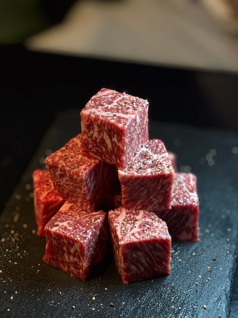대표메뉴 및 가격: 한우 숙성 등심(150g, 6만 9천원), 한우 숙성 안심(150g, 7만 2천원), 마스카포네 메쉬포테이토(1만 2천원) 등