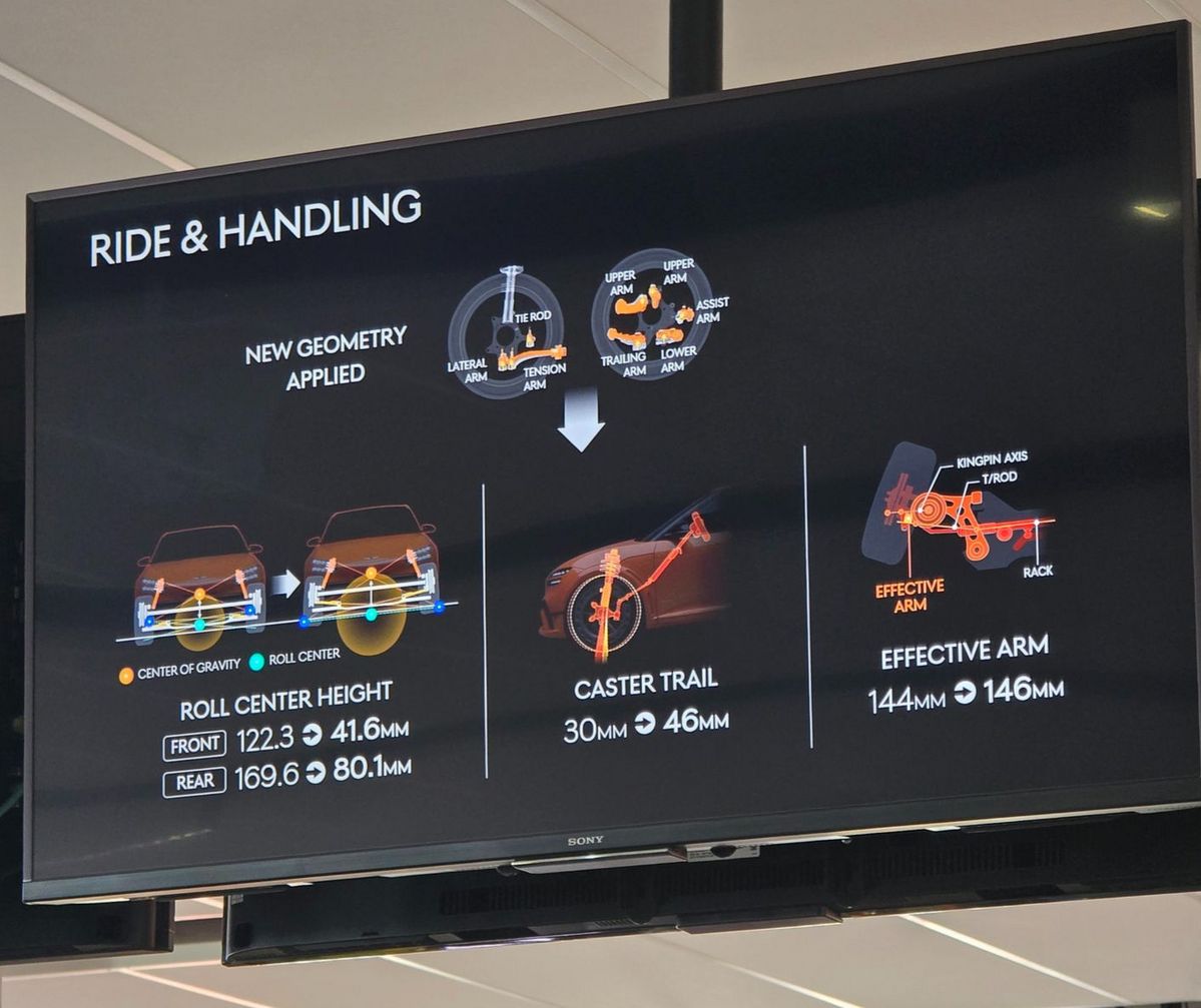 눈에 보이지 않는 변화는 더 크다. 폭발적인 성능을 효과적으로 받아내기 위해 차체 강성을 높였다. 용접 포인트를 기존 GV60보다 20곳 늘렸고 ‘L’자 형태의 브라켓을 뒷바퀴 상단에 각각 추가 설치해 차체 강성이 약 9.7% 증가했다. 고속으로 오랫동안 달리더라도 출력이 떨어지는 문제가 발생하지 않도록 배터리 냉각 시스템도 개선했다. 또한 마그마 전용 드라이브 모드인 ‘스프린트 모드’를 추가해 운전자가 손쉽게 차량의 최대 성능을 끄집어 낼 수 있도록 했다.