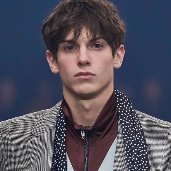 (왼쪽부터) 데님 트러커 맨 재킷, 옥스퍼드 맨 캔버스 셔츠, 레귤러 맨 데님 팬츠, 디올 로디 레이스업 맨 부츠, 스트라이프 맨 타이 모두 디올. 코튼 맨 트렌치코트, 자카르 맨 크루넥 톱, 부츠컷 맨 데님 팬츠, 디올 마일 러너 맨 스니커즈 모두 디올. 스트라이프 실크 맨 셔츠, 코튼 트윌 맨 팬츠, 디올 아치 맨 로퍼, 미디엄 메신저 맨 백, 플란넬 맨 타이 모두 디올.
