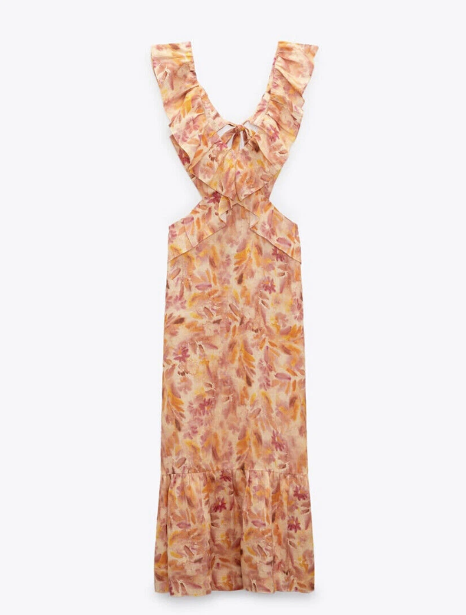 자라/ 퍼플드 리넨 브이넥 슬리브리스 미디 드레스/ 7만원대