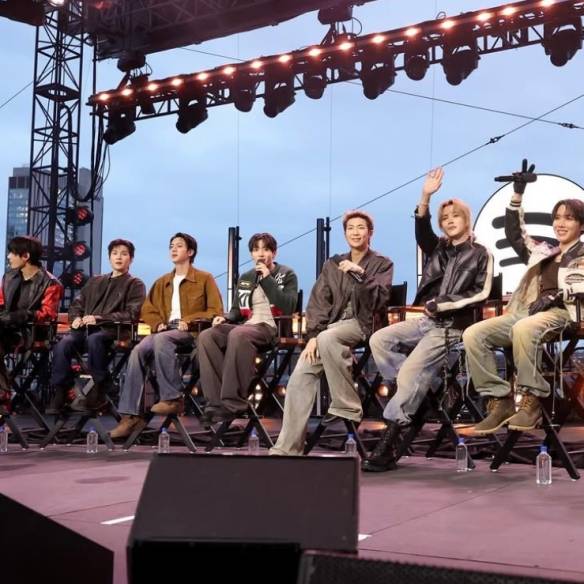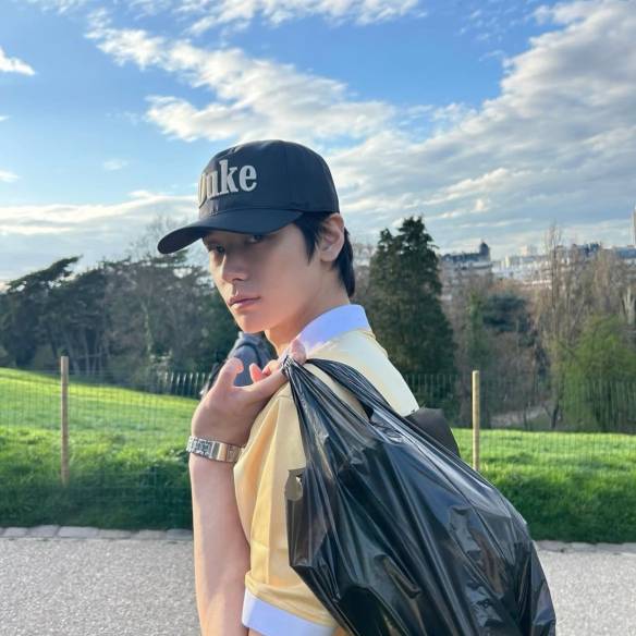 형석은 올블랙 스타일링에서도 아우터의 힘을 보여줍니다. 구조적인 레더 재킷이 상반신의 실루엣을 날카롭게 잡아주고, 슬릭한 광택이 정제된 엣지를 더하죠. 하반신은 루즈한 그래픽 트라우저로 균형을 맞추고, 과감한 화이트 프린트가 이너 레이어와 은은하게 호응하는 것이 인상적입니다. 타이트한 아우터와 릴랙스한 하의의 대비가 다이내믹한 실루엣을 완성하고, 청키한 부츠가 도시적인 태도를 확실하게 마무리하죠. 같은 셀럽이 아우터 하나만 바꿔도 무드가 완전히 달라진다는 것, 이 두 룩이 증명합니다.