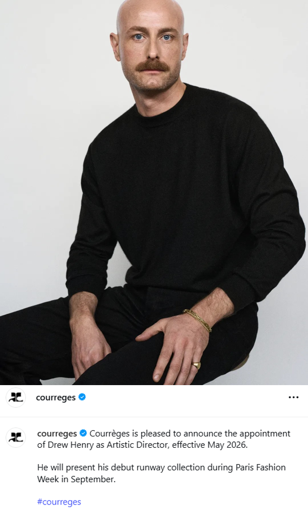 5월부터 드류 헨리가 꾸레쥬에 아티스틱 디렉터로 합류한다는 소식입니다. 오는 9월 파리 패션위크에서 첫 런웨이 컬렉션을 선보일 예정이죠.