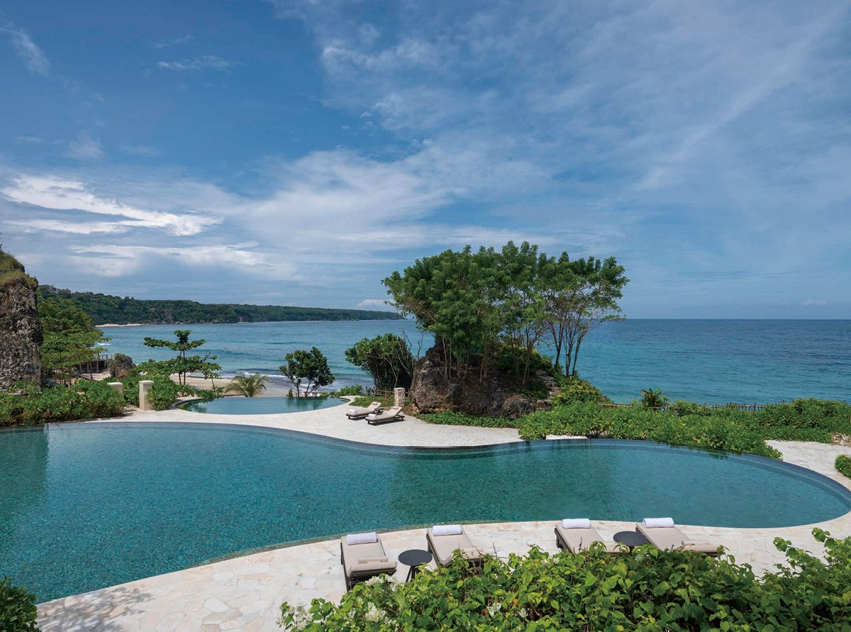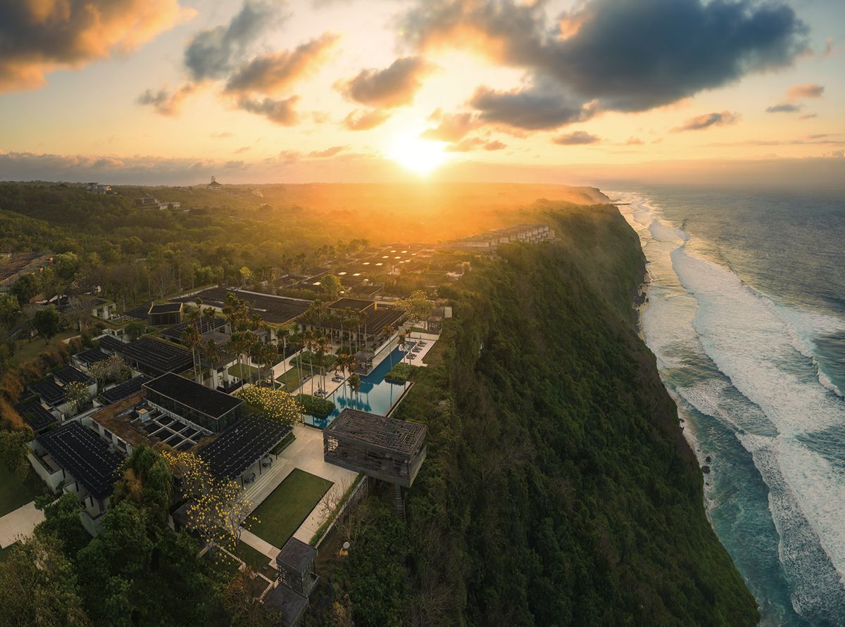 발리 남부 울루와투의 절벽 위에 자리한 리조트로 인도양을 내려다보는 파노라마 전망과 석양 풍경으로 유명하다. 자연과 건축이 조화를 이루는 공간으로 설계된 이 리조트는 세계적인 친환경 인증 ‘어스체크 플래티넘(10년 이상 지속적으로 환경 기준을 충족한 리조트에만 부여되는 최고 등급)’을 보유하고 있다.