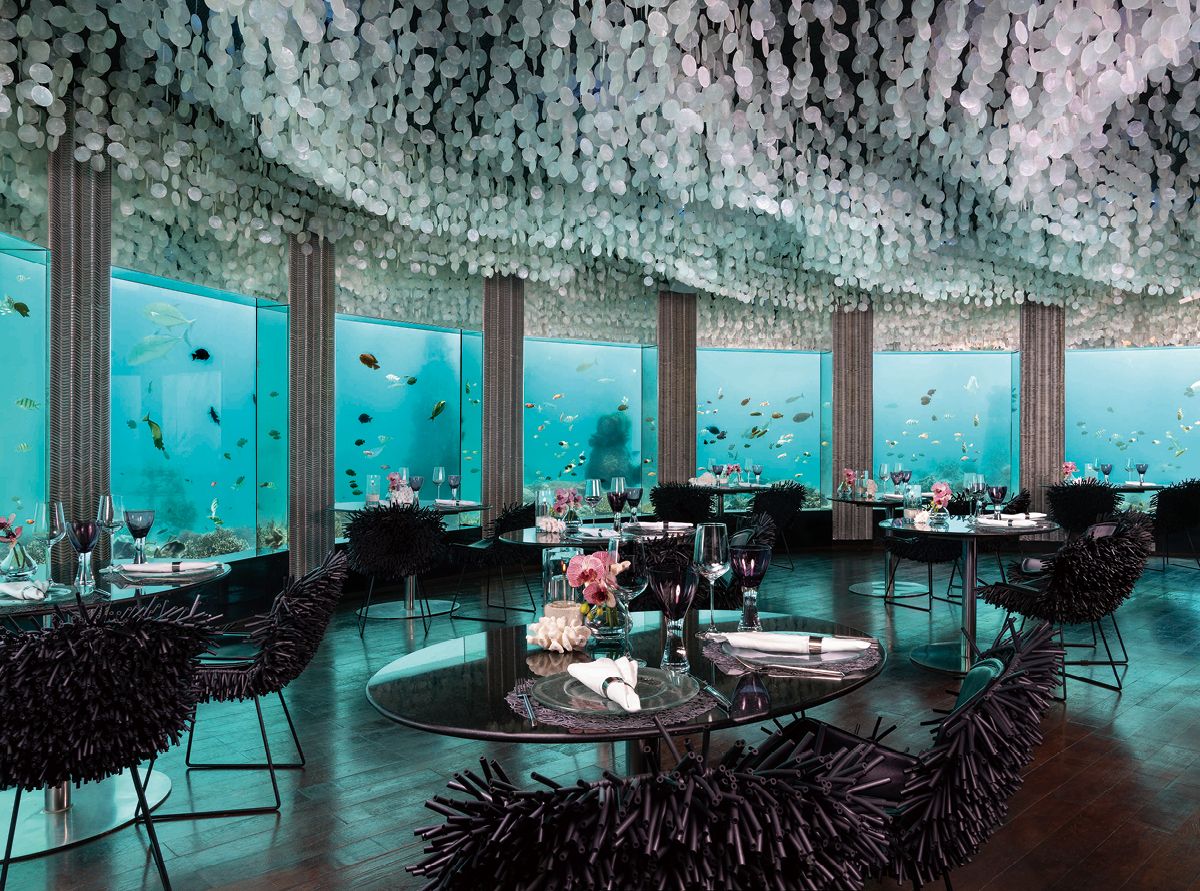 정글 위 트리하우스 레스토랑 ‘네스트’에서는 동남아시아 요리를, 해수면 6m 아래 위치한 수중 레스토랑 ‘서브식스’에서는 일본과 페루 요리를 결합한 니케이 스타일의 테이스팅 메뉴를 선보인다. 해변 라운지 ‘듄’에서는 칵테일과 함께 여유로운 시간을 보낼 수 있으며 서핑 문화에서 영감을 받은 ‘서프 섁’은 캐주얼 다이닝 공간이다.