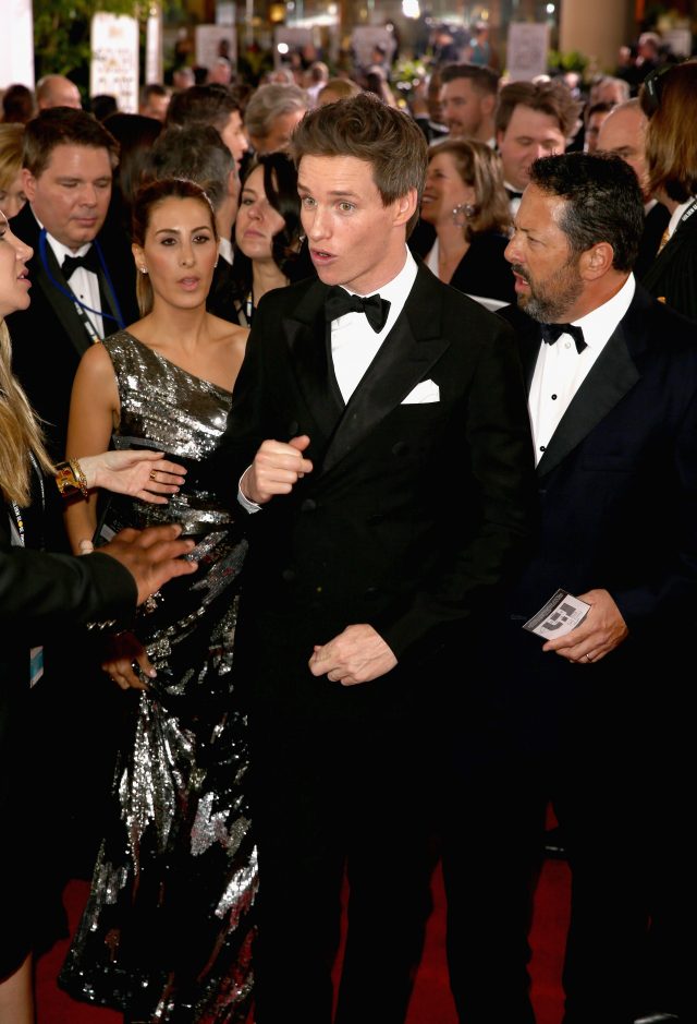 인터뷰 중인 에디 레드메인이 향한 곳은?
