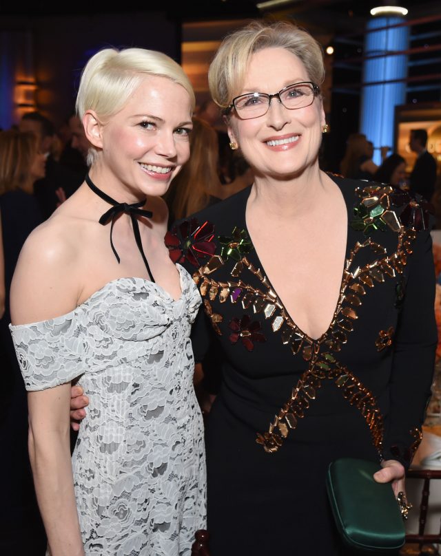 영화 <맨체스터 바이 더 씨>로 영화 여우조연상 부문에 노미네이트된 미셸 윌리엄스와 영화 <플로렌스>로 영화 뮤지컬코미디 여우주연상 부문에 노미네이트된 메릴 스트립의 아름다운 미소. 억만금을 줘도 살 수 없겠죠.