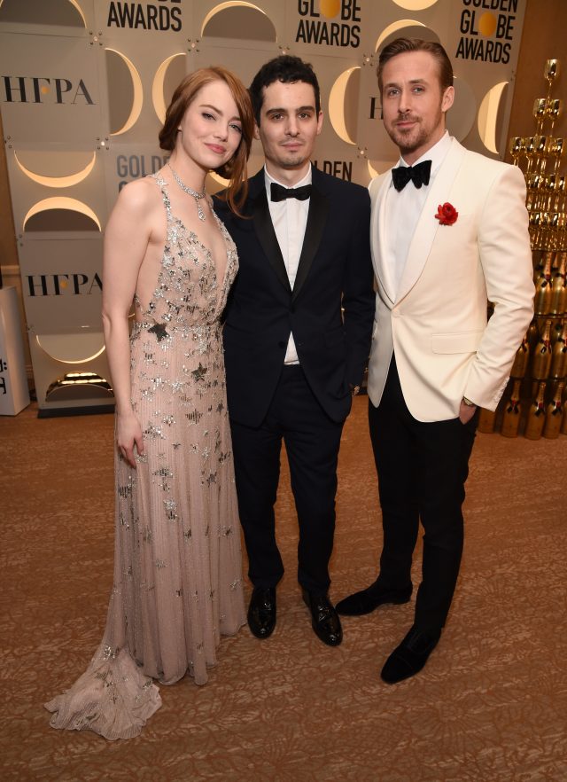 골든글로브의 진정한 위너. 무려 7관왕을 차지한 <라라랜드>로 영화 뮤지컬 코미디 여우주연상 부문을 수상한 엠마 스톤 그리고 감독상에 빛나는 데미안 차젤레 감독, 마지막으로 영화 뮤지컬 코미디 남우주연상 부문 수상자인 라이언 고슬링.