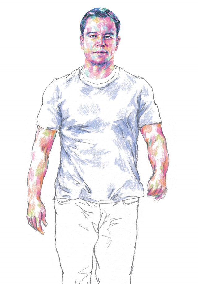 <마션>에서는 우주에서 혼자 생존한 비행사의 몸을 만들었다. <그레이트 월>에서는 말을 타고 검을 휘두르는 데 적합한 몸이 됐다. 마침내 <제이슨 본> 촬영에 임박했을 때 맷 데이먼은 45세였다. 왼주먹 한 방으로 상대를 기절시키는 전직 특수 요원이었다.