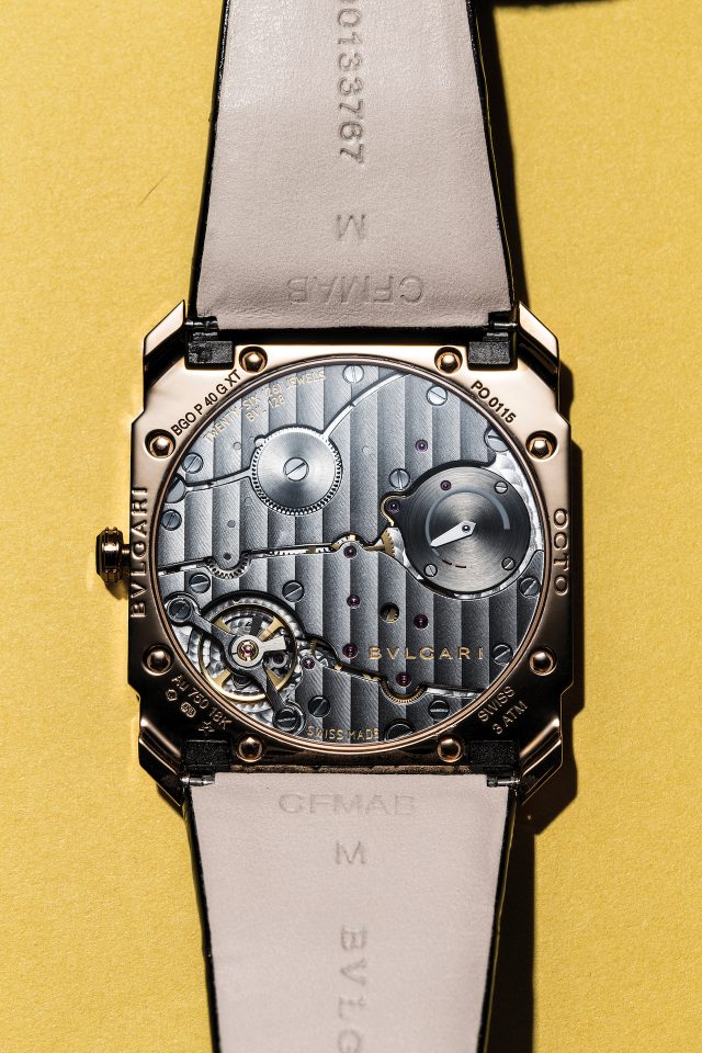 무브먼트 시계가 얇아지려면 무브먼트가 얇아야 한다. 불가리는 2.23밀리미터 두께의 무브먼트를 만들었다. 기본적 기계식 시계에 쓰는 ETA2824의 두께에 비하면 반도 안 된다. 얇아도 고급 시계니 시계의 동력 잔량을 보여주는 파워 리저브 게이지까지 설치되어 있다.