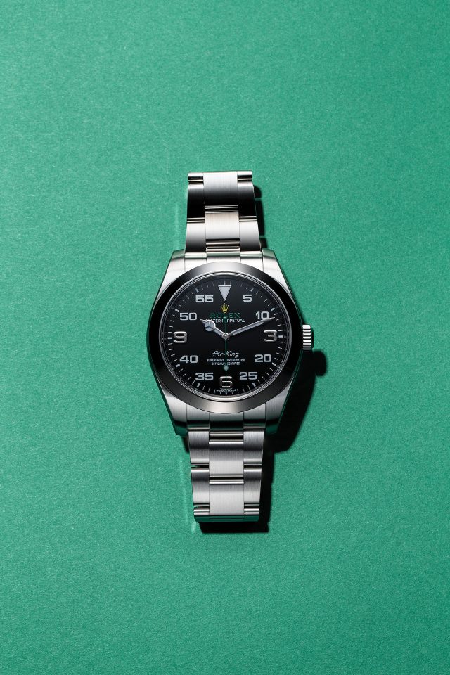2016년에 새로 나온 롤렉스 에어-킹이다. 에어-킹은 오랫동안 작은 케이스로 나오다 잠깐 생산을 멈추고 시계 박람회인 바젤월드 2016에서 새로 선보였다.