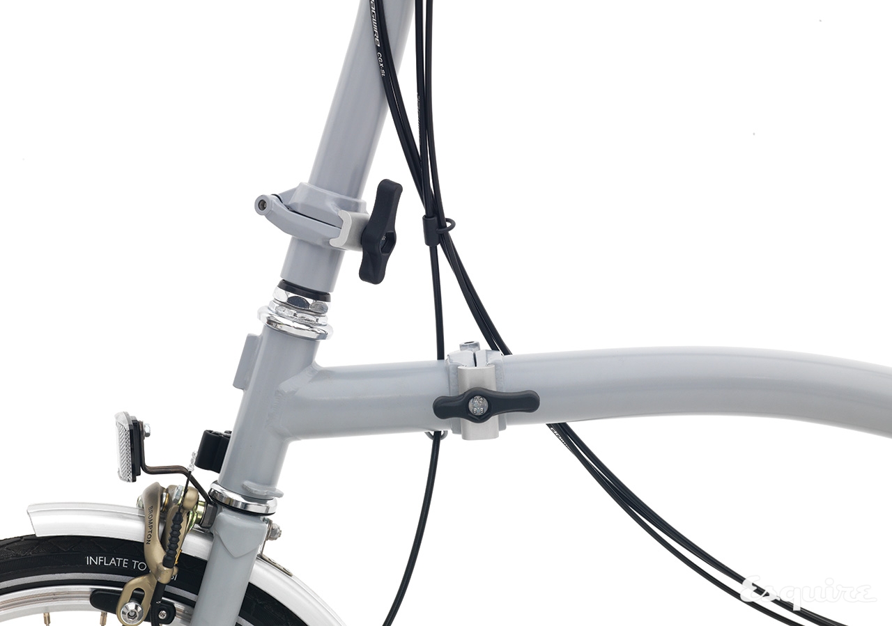 브롬톤의 앞쪽은 나사를 푸는 방식으로 접고 편다. 볼트와 브라켓을 함께 써서 간편한 동시에 견고하다.