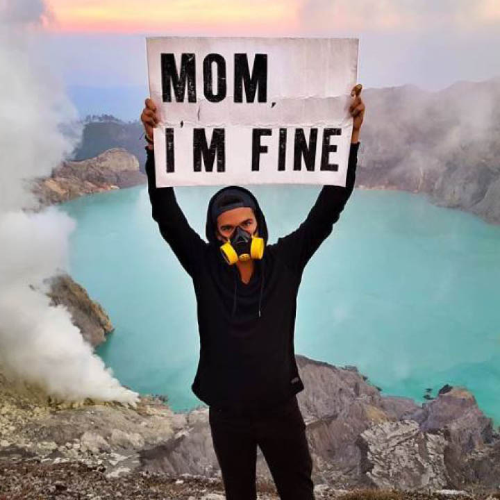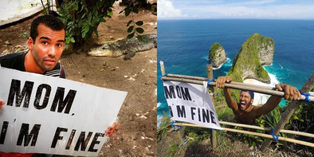 올림픽 경기에 ‘걱정하기’ 종목이 있다면, 이 SNS 스타의 어머니가 금메달을 따지 않을까. 그가 여행 사진 속에서 들고 있는 싸인을 보면 말이다.