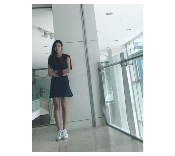 꾸준한 운동으로 다져진 탄탄한 복근, 키 168cm의 반 이상이 다리 길이일 것 같은 이기적인 비율을 가진 소유.