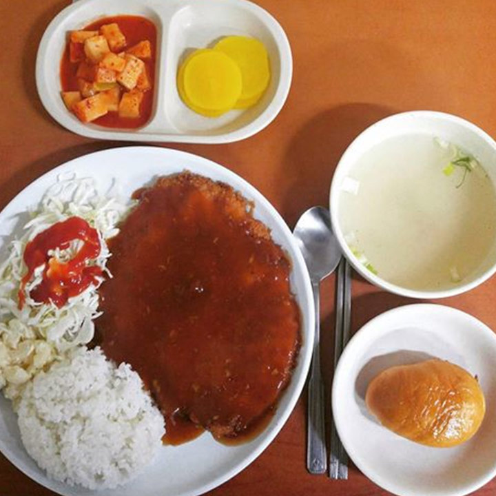 왕돈가스는 크기도 중요하지만 두께도 중요하다. 크기에만 집중해서 한없이 고기를 두드리다 보면 고기가 너무 얇아져서 고기를 먹는 건지 튀김옷을 먹는 건지 혼돈스러운 지경에 이르기 때문이다. 시립대 명실공히 맛집으로 이름난 오뚜기 왕돈가스는 큰 데다 두껍기까지 하다. 그러니 고기의 제 맛을 느낄 수 있다. 무엇보다 버터를 발라 살짝 구워낸 모닝빵이 포인트다. 가로로 반을 가른 뒤 돈가스와 양배추 샐러드를 넣어 먹으면 기가 막힌 햄버거가 되기도 한다.